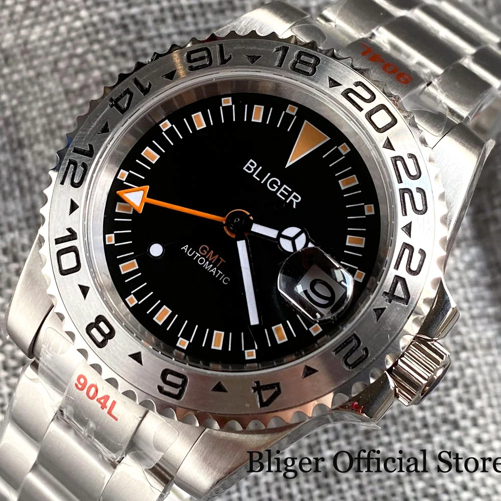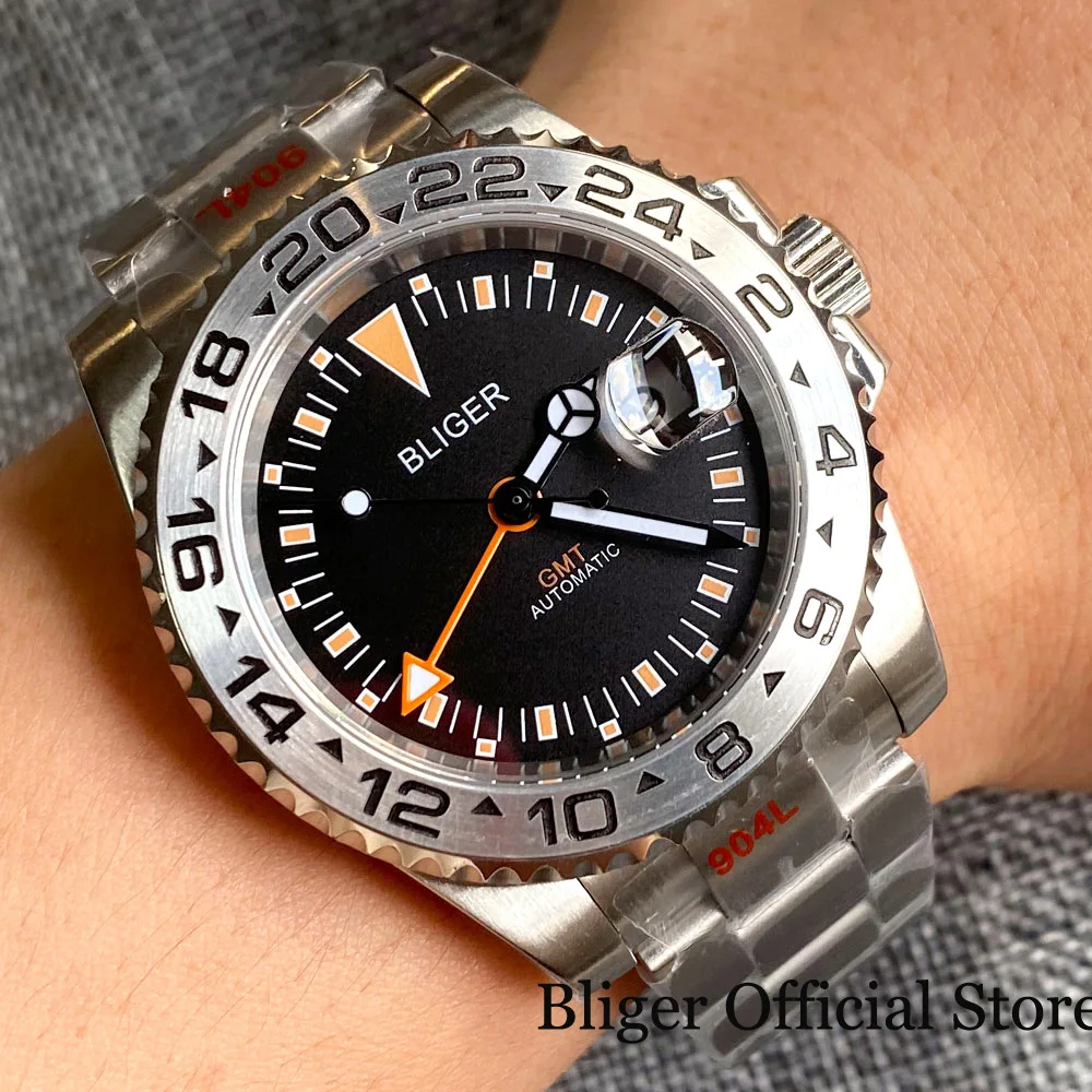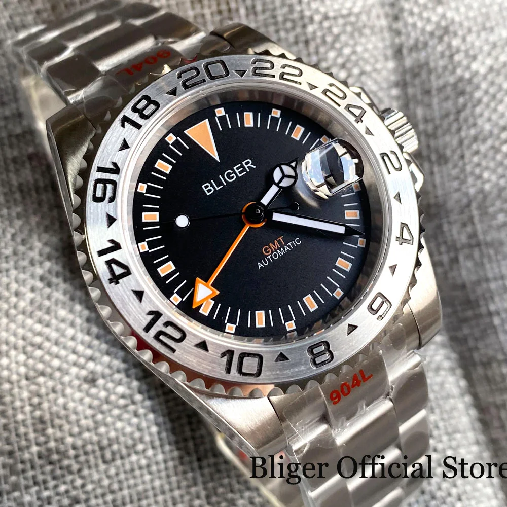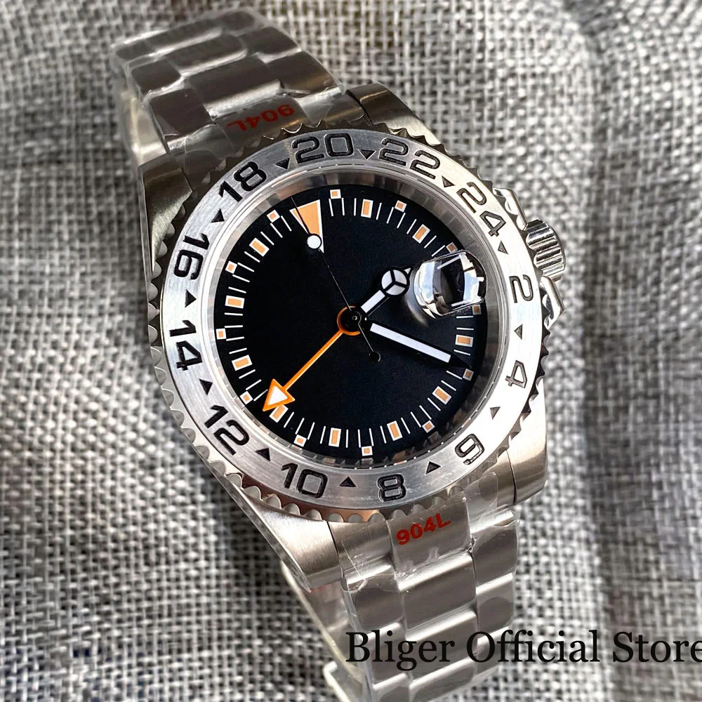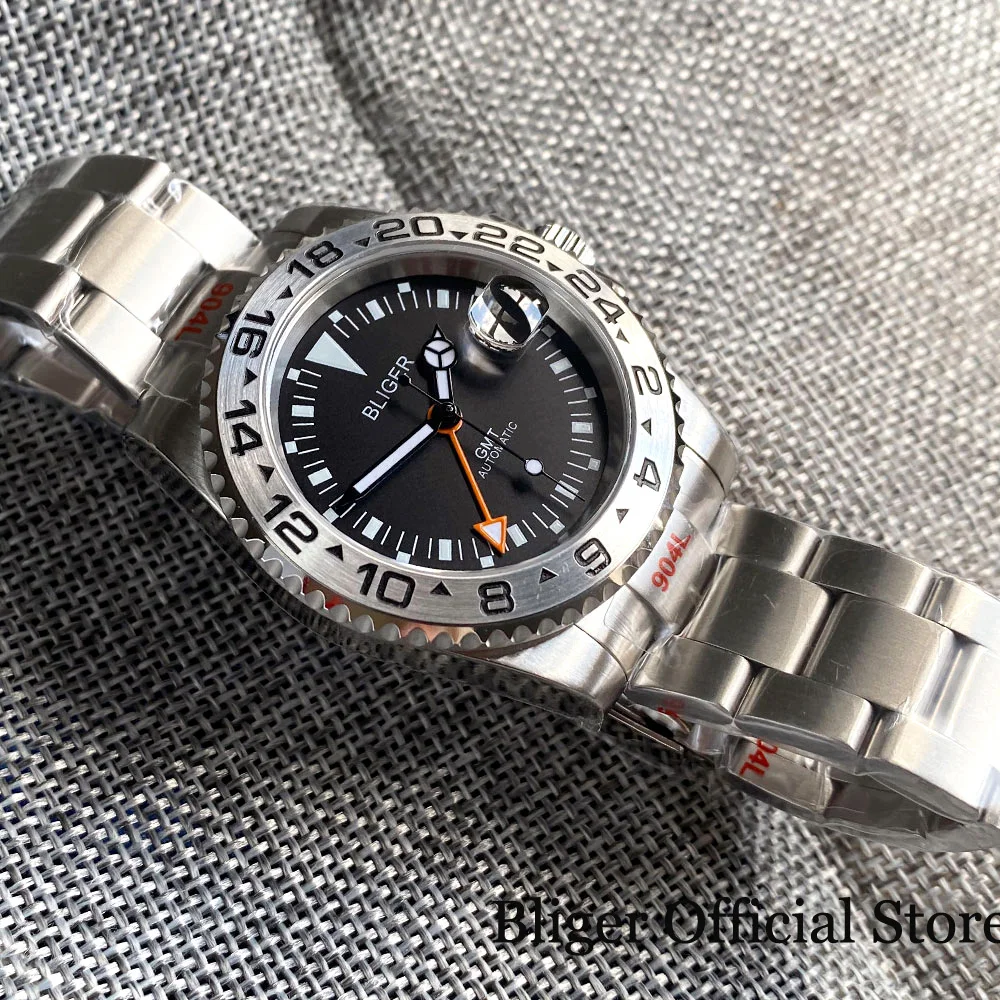 Мужские часы с автоподзаводом BLIGER 40 мм 43 мм, оранжевые часы с застежкой на указательный палец, матовые часы со стальным браслетом, лупой для даты и сапфировым стеклом