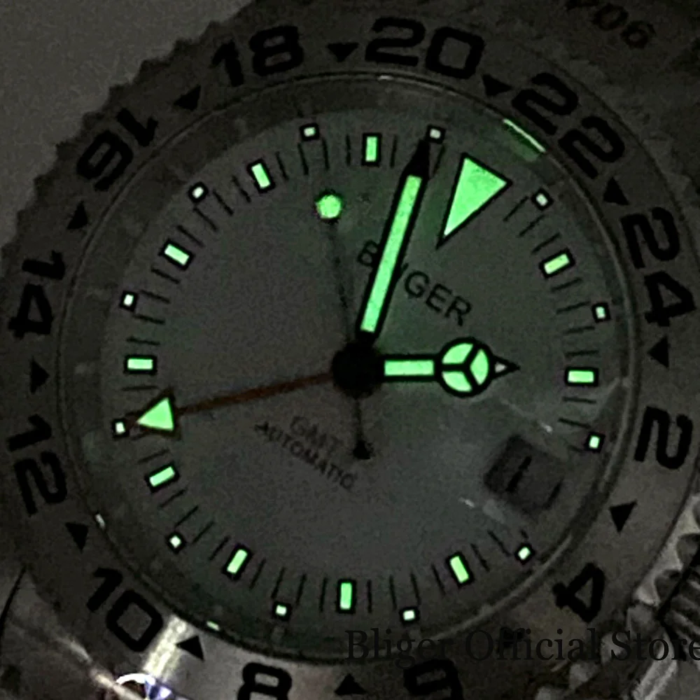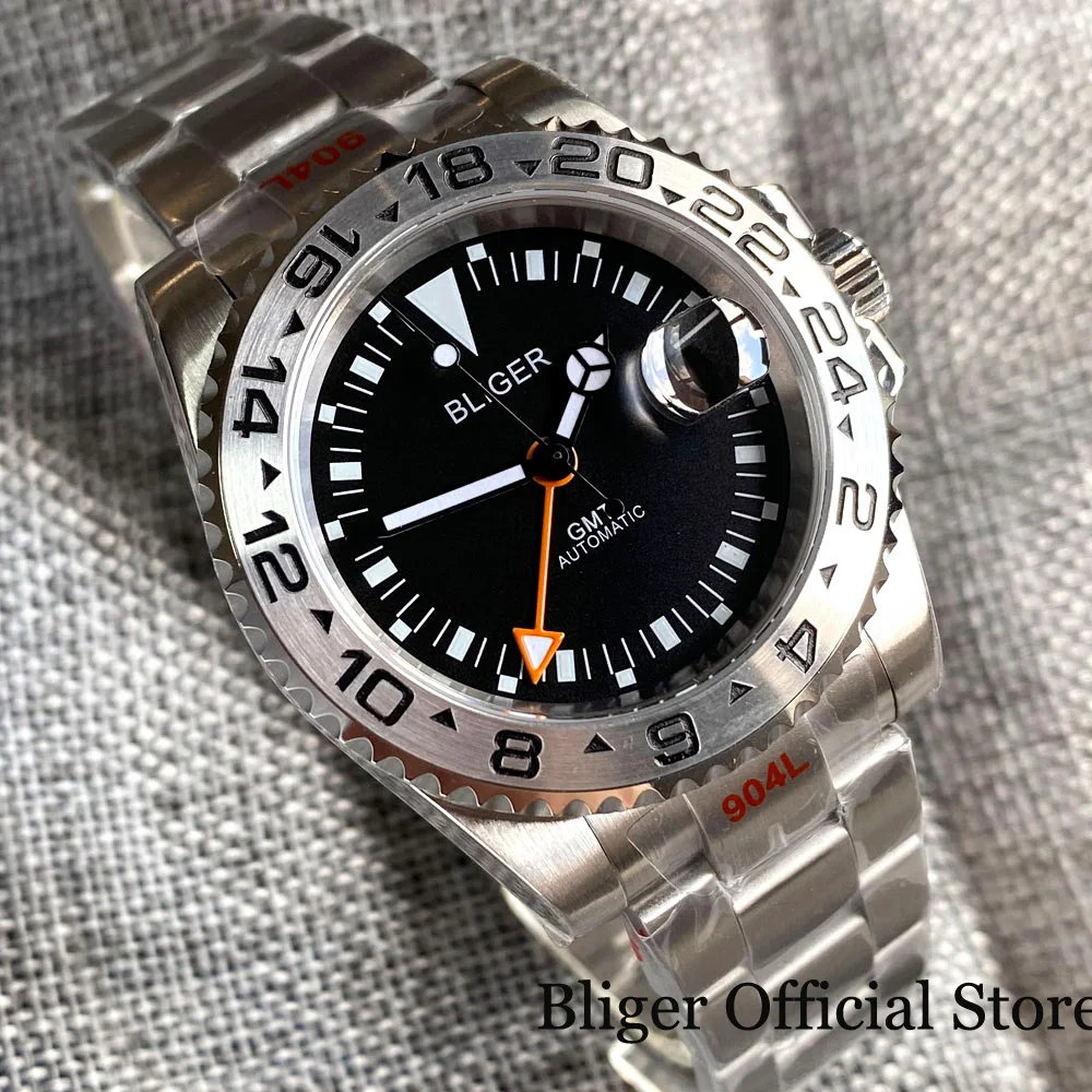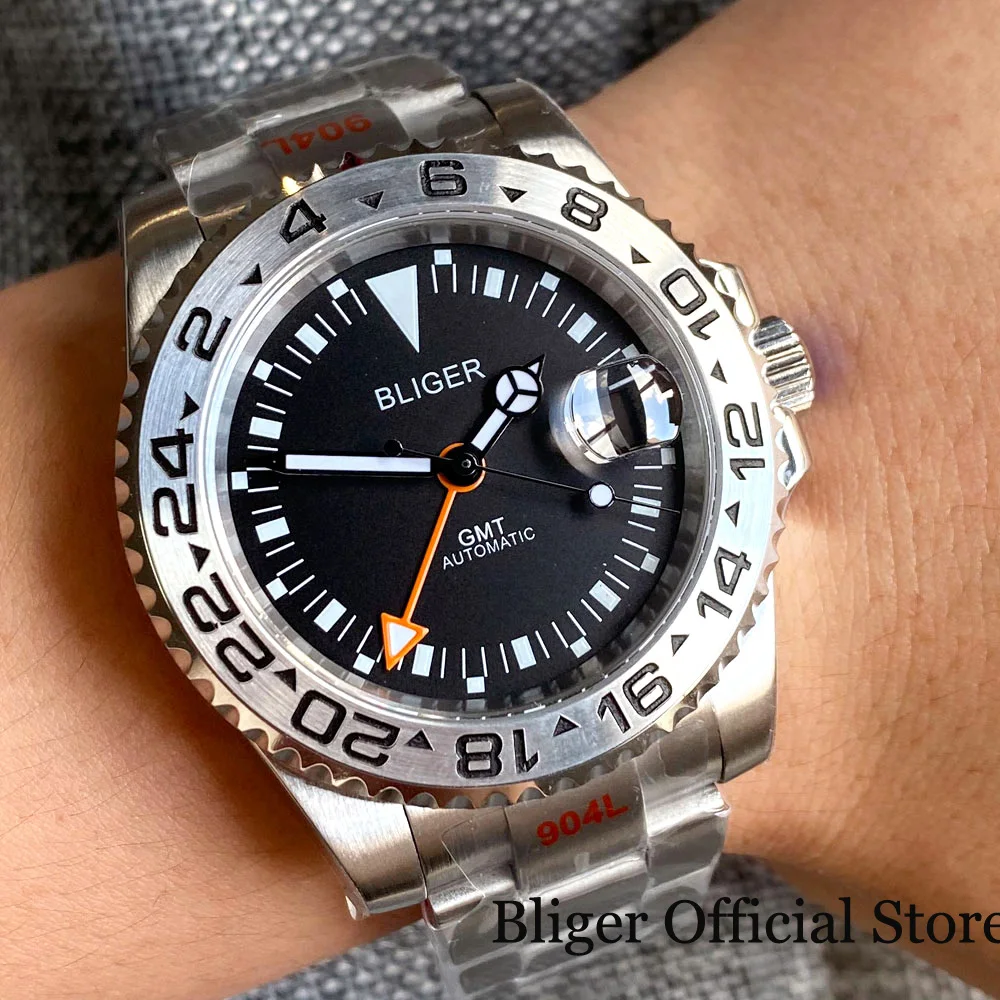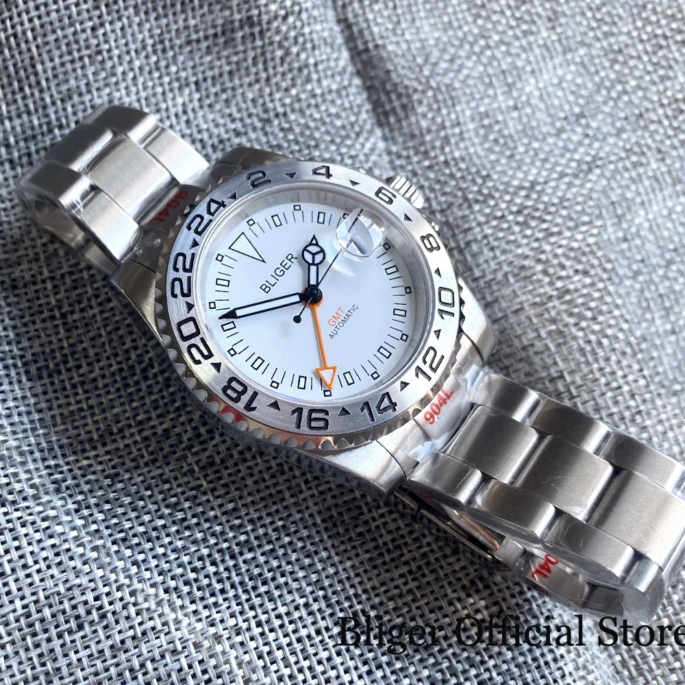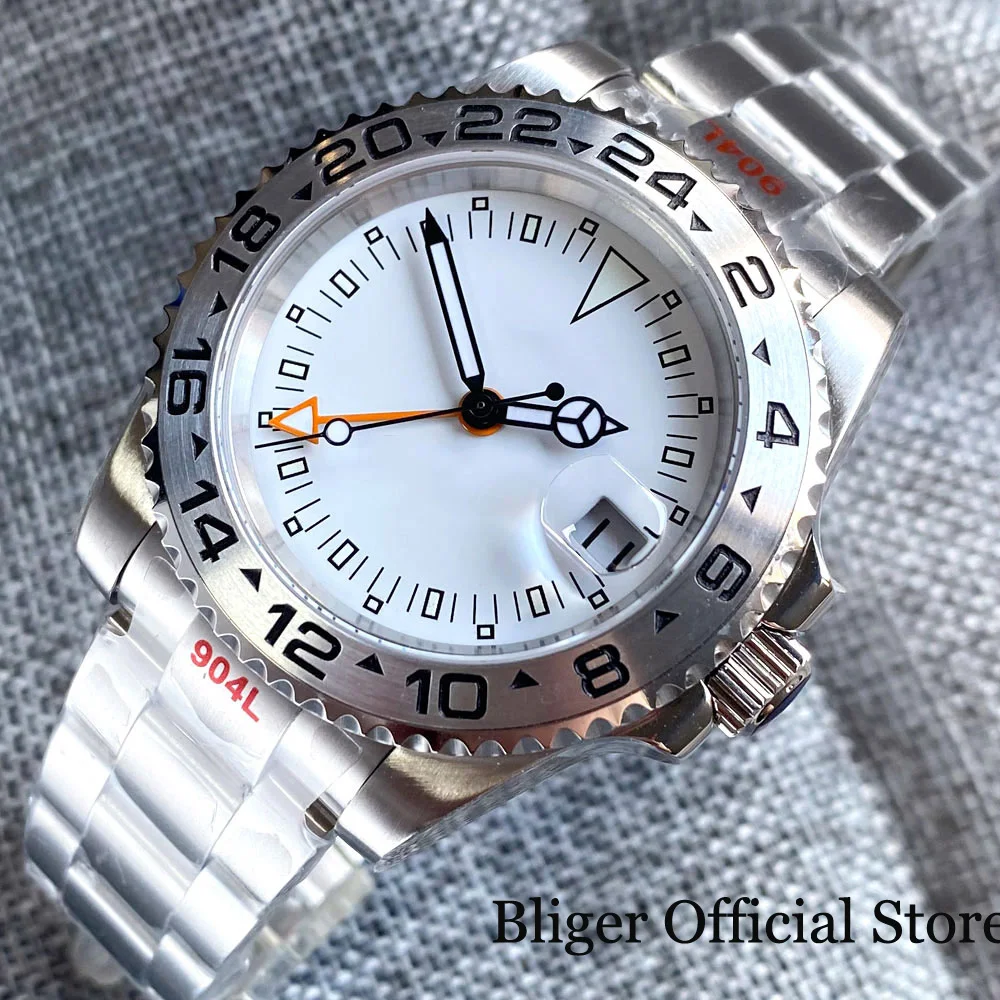 Мужские часы с автоподзаводом BLIGER 40 мм 43 мм, оранжевые часы с застежкой на указательный палец, матовые часы со стальным браслетом, лупой для даты и сапфировым стеклом