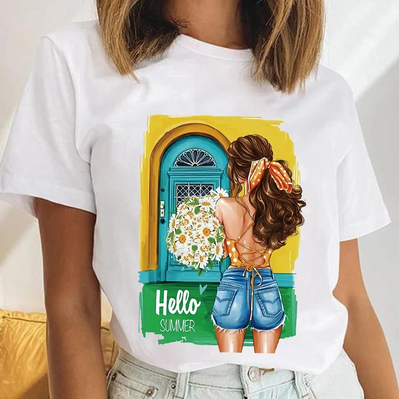 Летние футболки, женская футболка с мультяшным принтом, Милая женск...