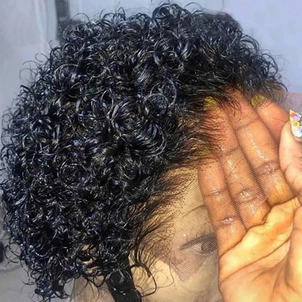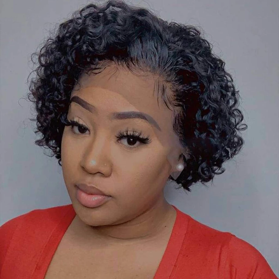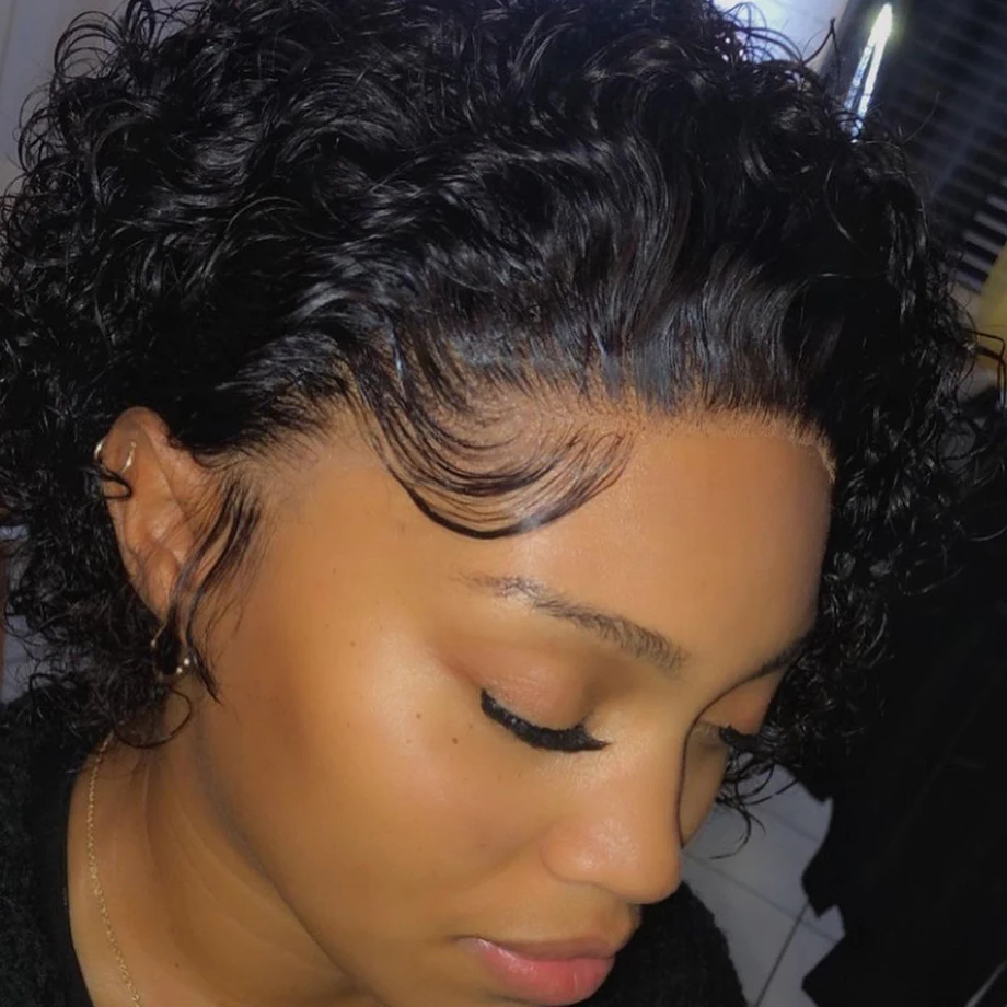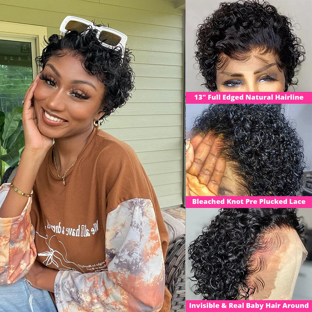 Парик фея, Короткие дешевые вьющиеся волосы, парик 13x1, прозрачные кружевные парики для женщин, человеческие волосы, водная волна, Свободный парик с глубокой волной