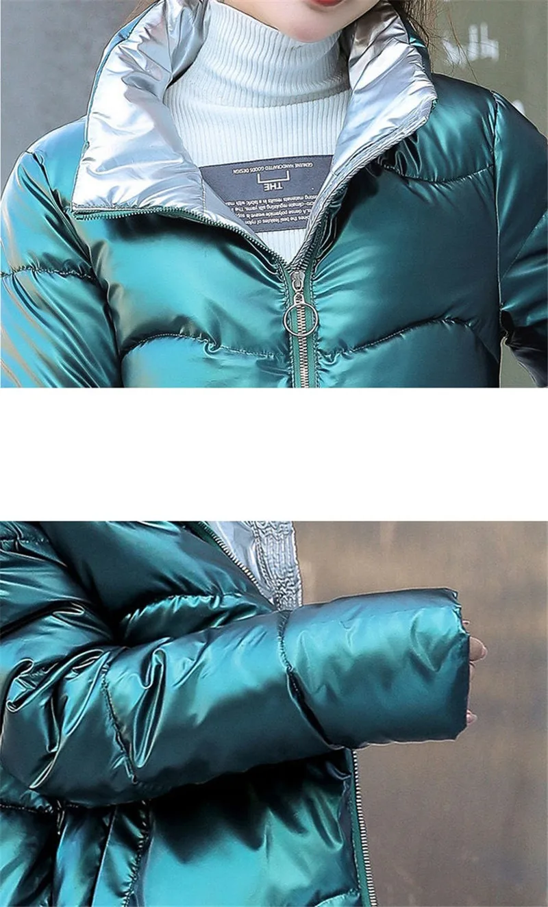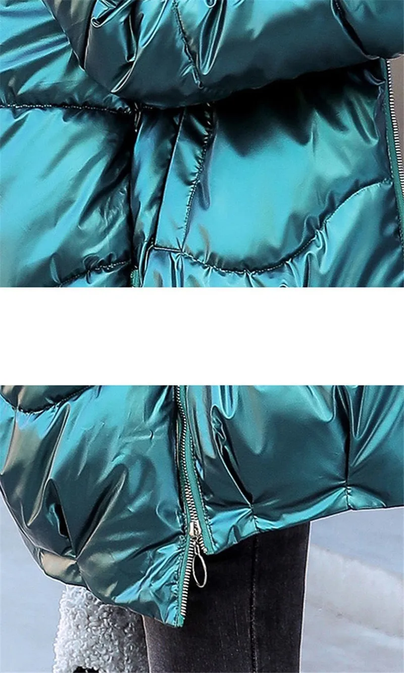 Зимние парки, блестящая пуховая одежда, куртка, женская модная с дл...