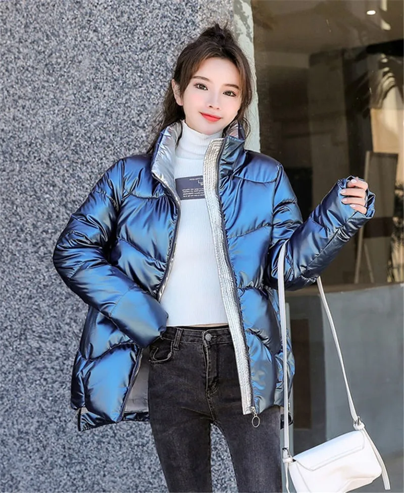 Новинка 2021, зимнее пальто с воротником-стойкой, глянцевые парки, ...