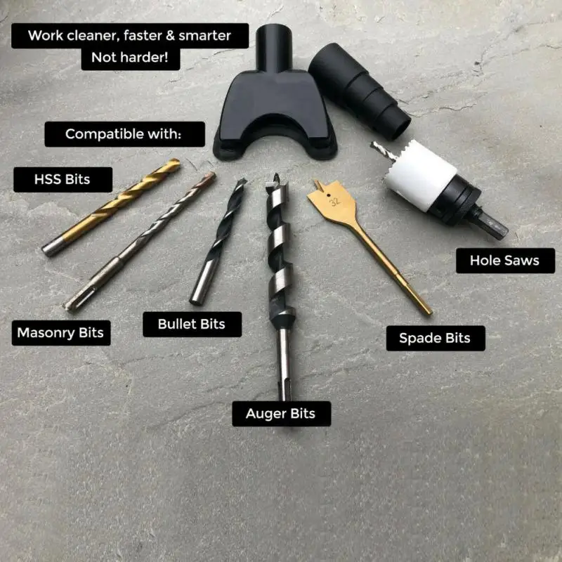 Пылеуловитель Hands-free эффективно работает с лопатками, пулевыми сверлами, высокоскоростными стальными сверлами, сверла для плитки, коронки, Кольцевые пилы и даже сверла.