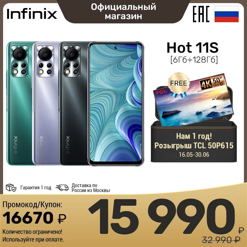 Cмартфон Infinix HOT 11S 6+128GB Helio G88 50 МП Тройная камера NFC Быстрая Зарядка 18 Вт 6,78 FHD+ 90 Гц Доставка из России
