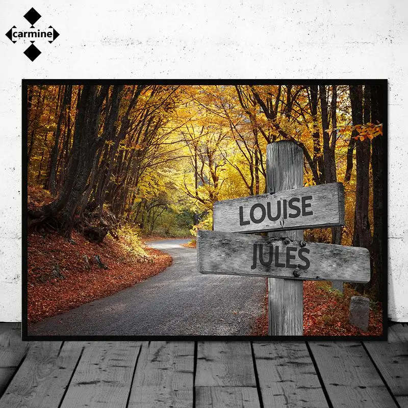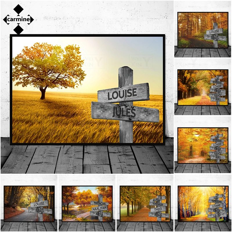 Дорожный знак с именем, холст, картина на заказ, печать на холсте, Осенний пейзаж, плакаты и принты, фотография скандинавский принт для домашнего декора, подарок