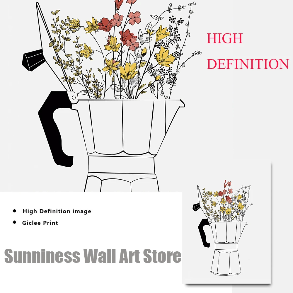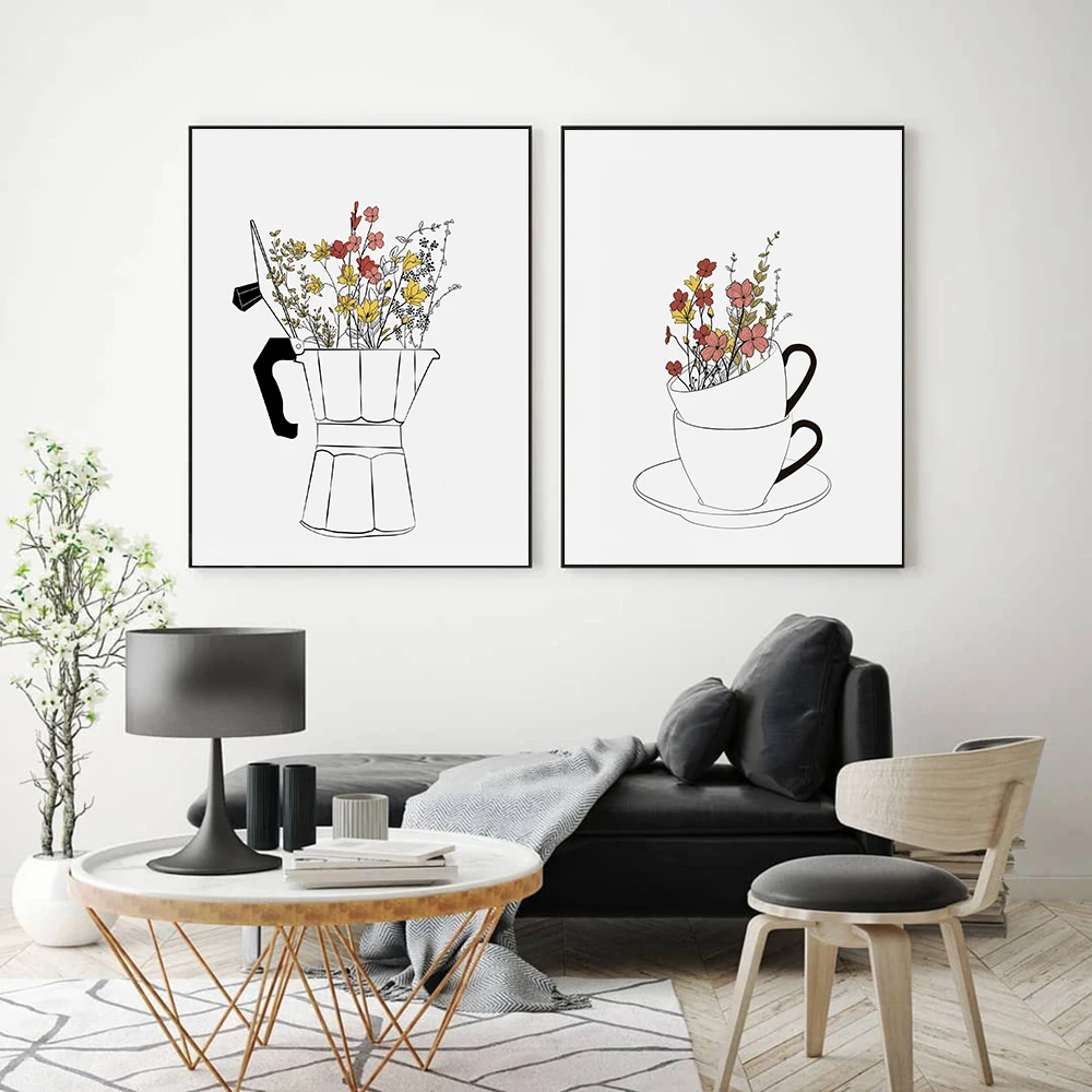 Настенные постеры в скандинавском стиле, картины на холсте с чашками и цветами для влюбленных кофе, для гостиной, кофейни, кухни, домашний декор