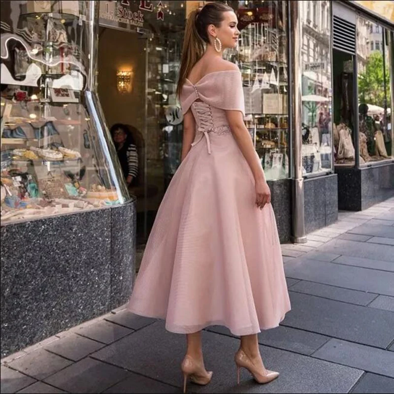 Женское платье для выпускного вечера, розовое платье с рукавом реглан, длиной ниже колена, со шнуровкой, для особых случаев