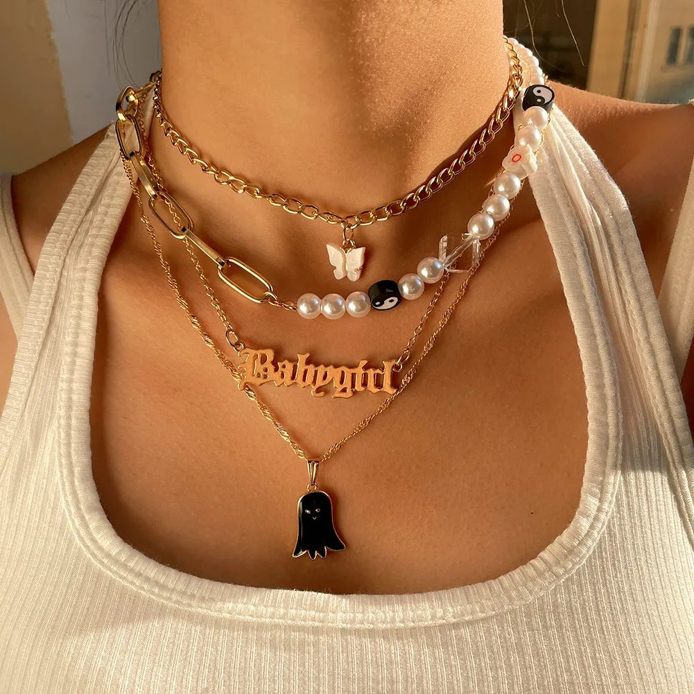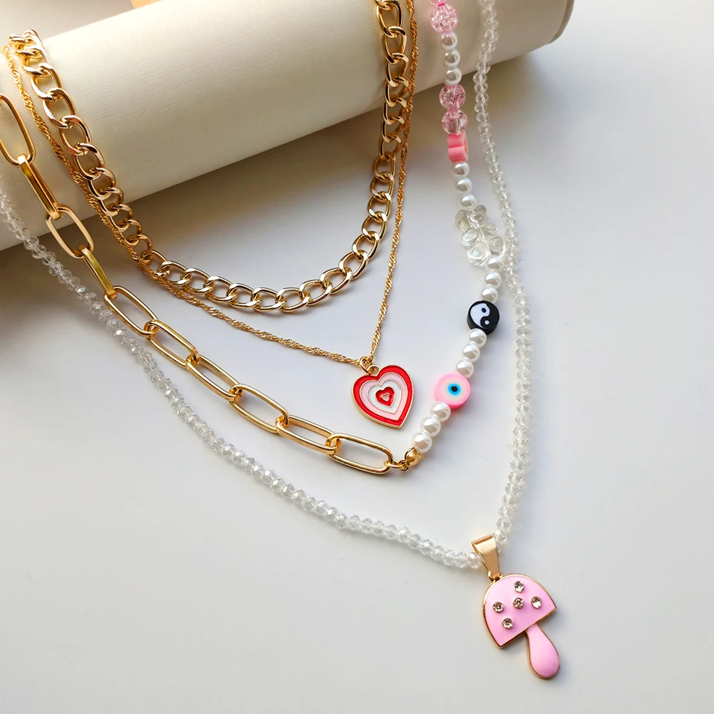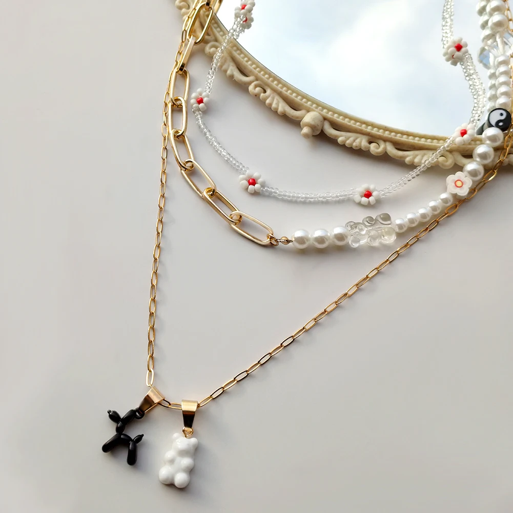 Женское многослойное ожерелье Flatfoosie, эмалированное ожерелье с ...