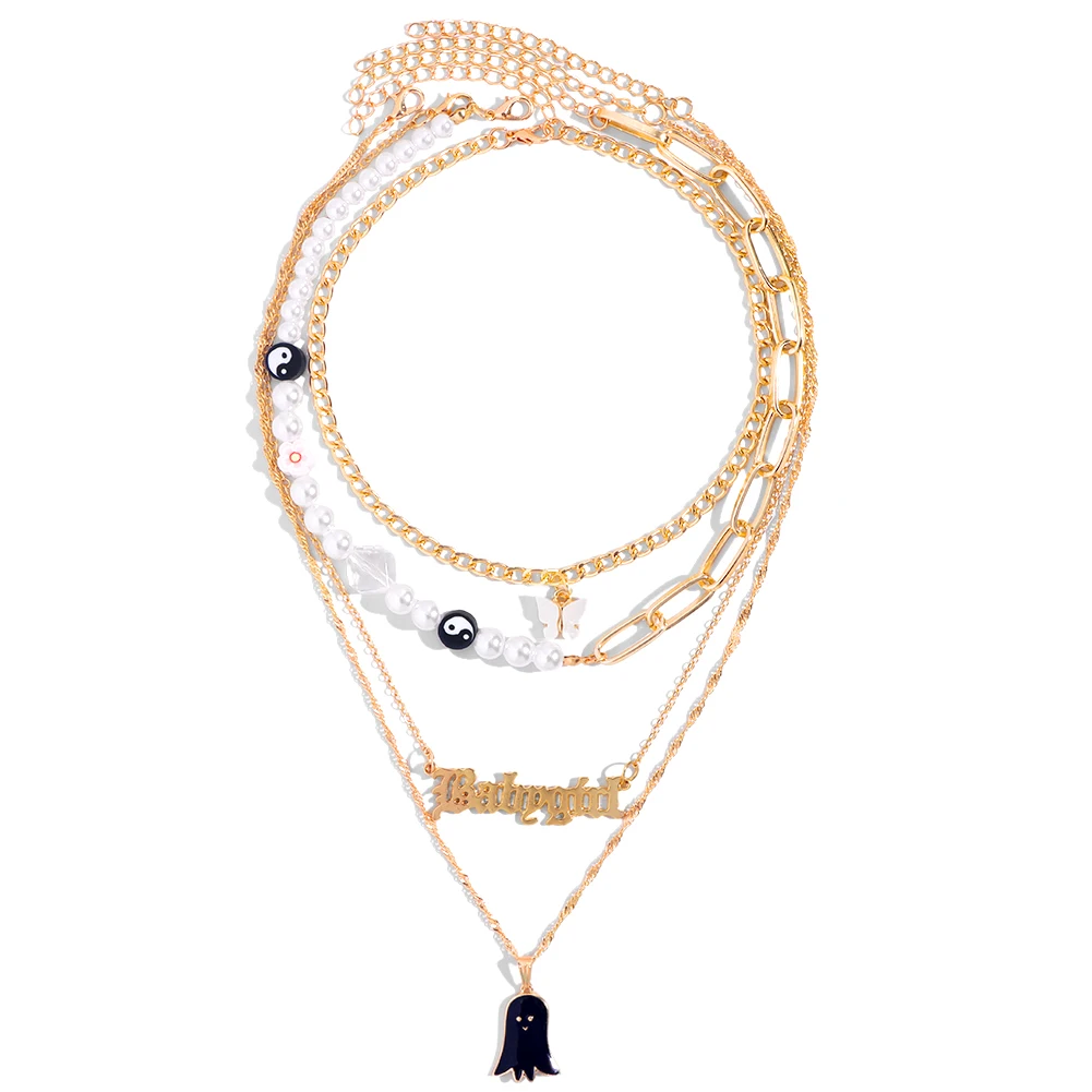 Женское Ожерелье из жемчуга Flatfoosie, многослойная металлическая ...