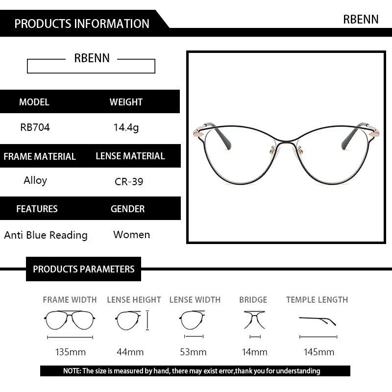 RBENN новый дизайн кошачий глаз женские очки для чтения анти синий светильник металлическая оправа Пресбиопия читатель с CR-39 линзами + 1,75 2,25 2,50
