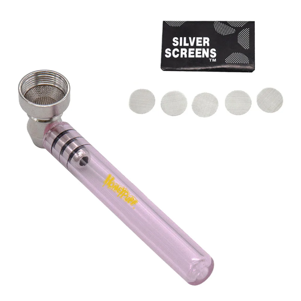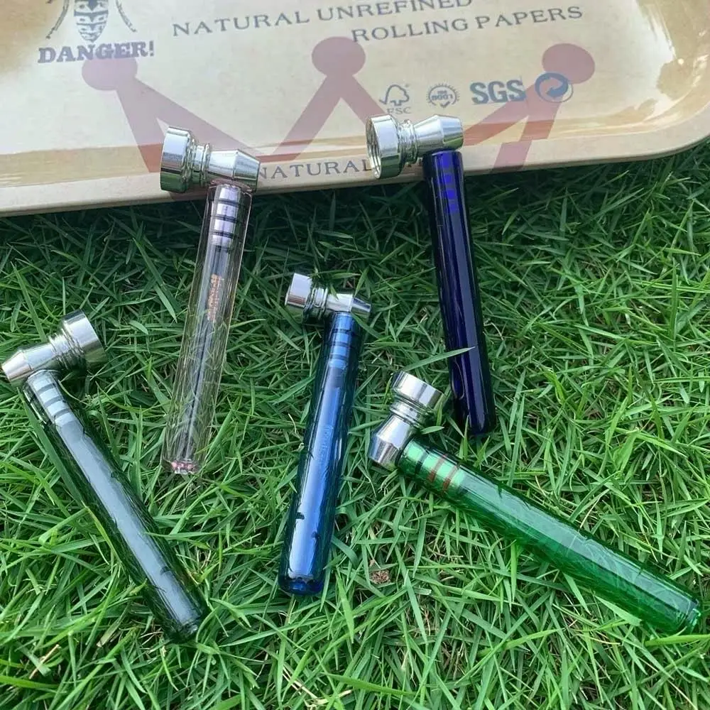 Стеклянная дымовая трубка премиум-класса HONEYPUFF 93 мм с прозрачной ручкой с металлической чашей и сеткой из 20 штук