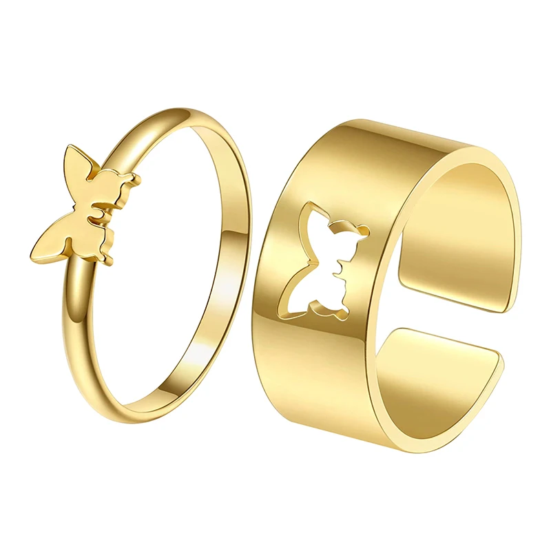 Набор колец с бабочкой в стиле панк, парные Металлические Открытые Колечки на указательный палец, с пряжкой, Ювелирное Украшение для женщин, свадебное кольцо