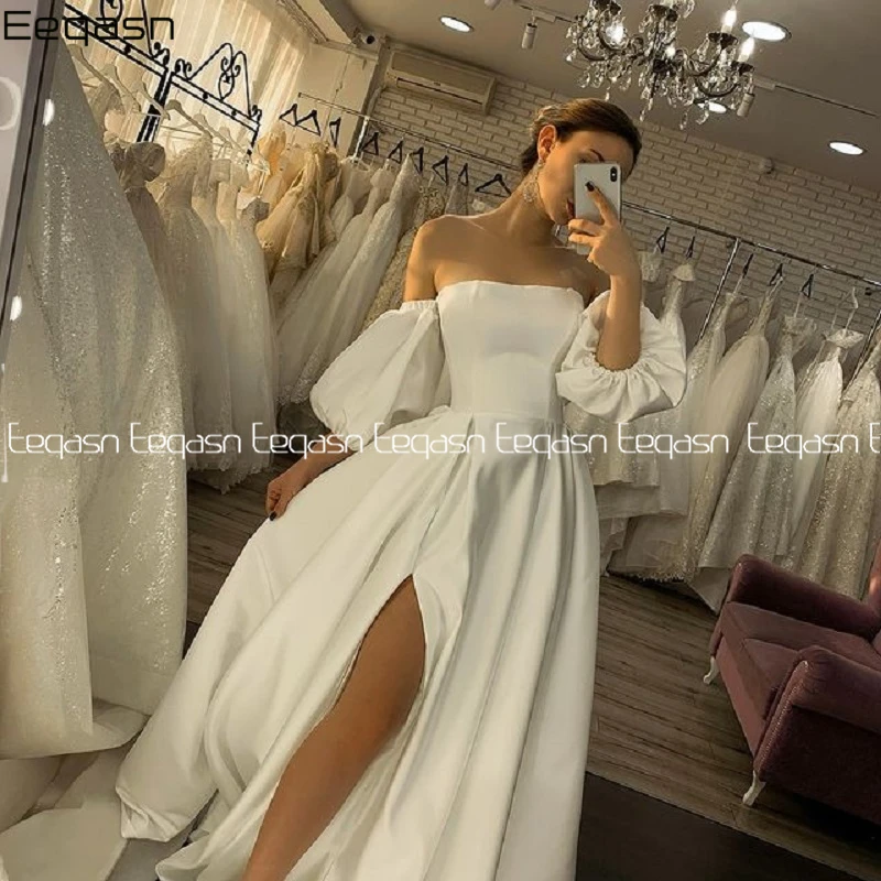 Элегантные атласные вечерние платья 2022, платье-трапеция с коротким рукавом и высоким разрезом, длинное платье для выпускного вечера, вечерние платья, платья для торжества