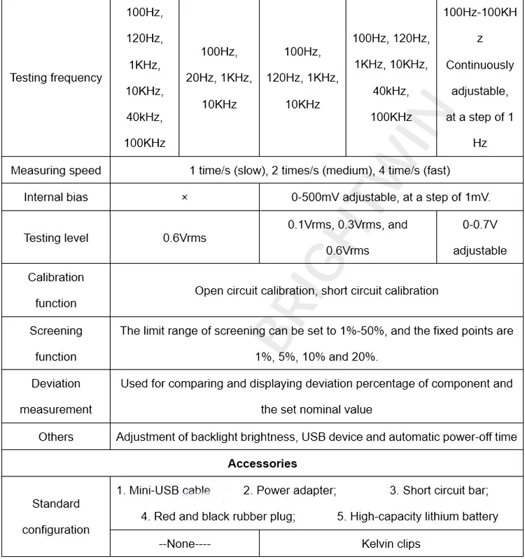 ●Измеряемая частота 100 Гц, 120 Гц, 1 кГц, 10 кГц, 40 кГц, 100 кГц и т. д.