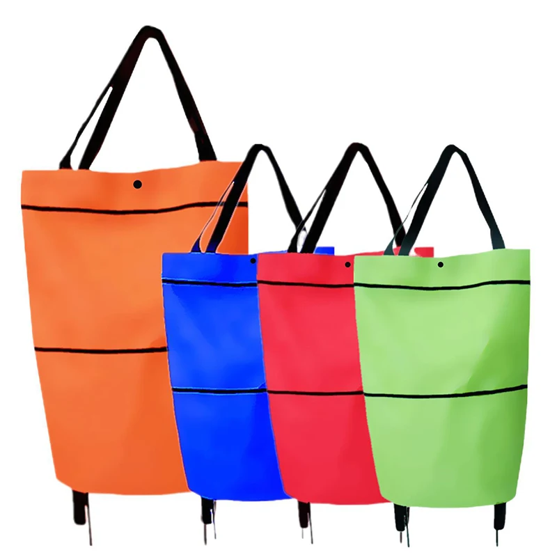Складная корзина для покупок 2 в 1, складная Двухступенчатая складная сумка для покупок на молнии с колесами, складная корзина для покупок