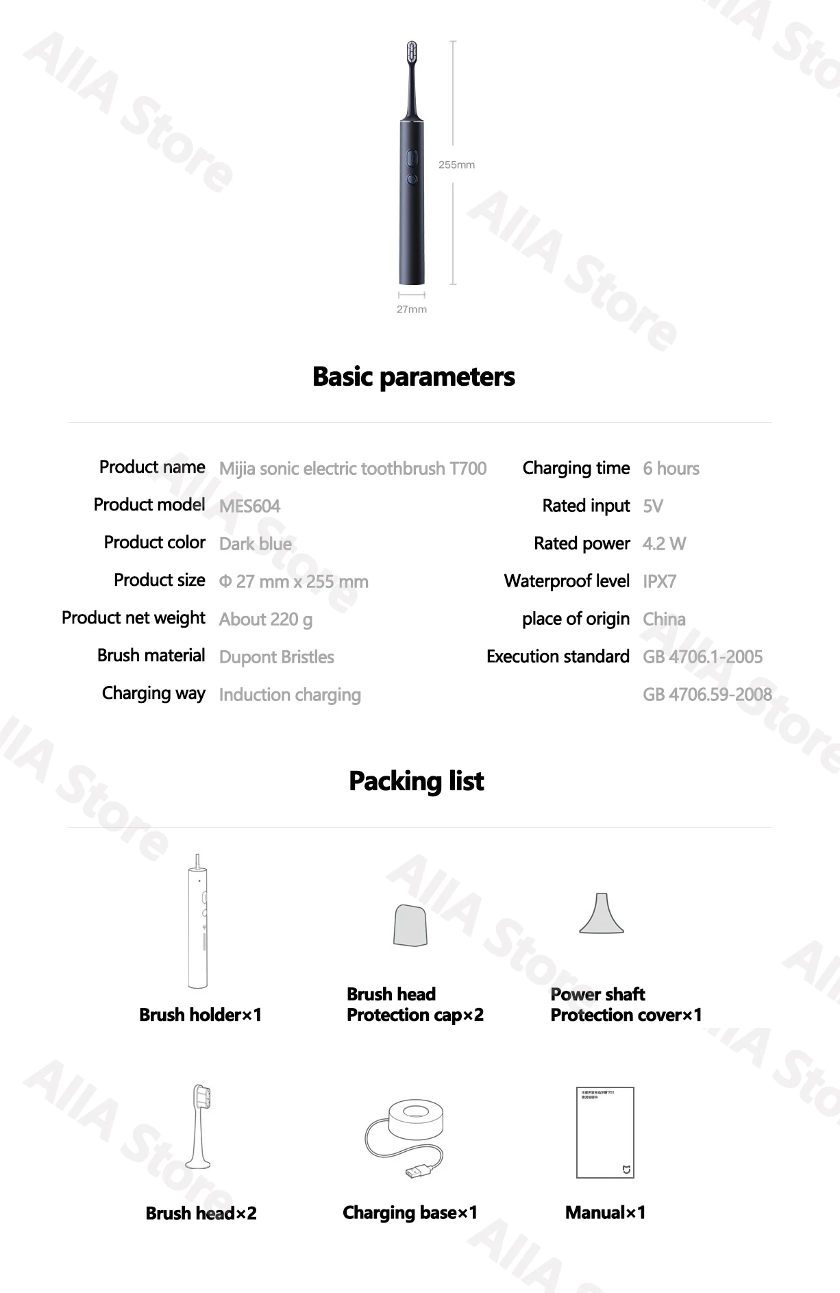 Xiaomi Mijia T700 звуковая электрическая зубная щетка IPX7 Водонепроницаемая беспроводная Индукционная зарядка со светодиодным дисплеем ультратонкая щетка