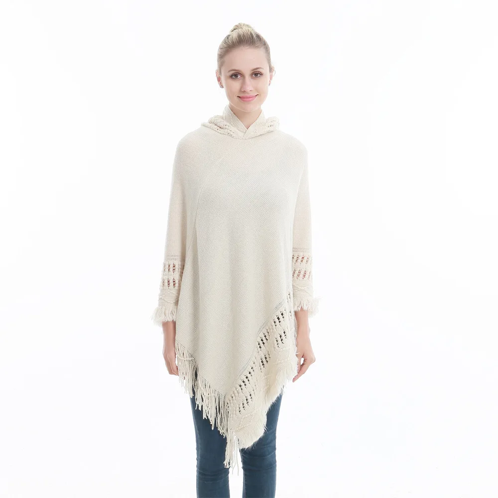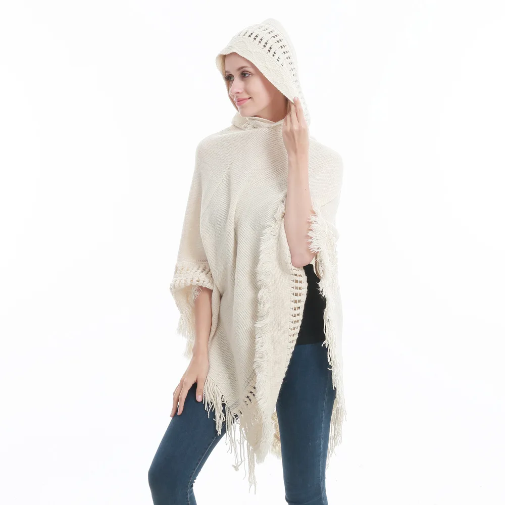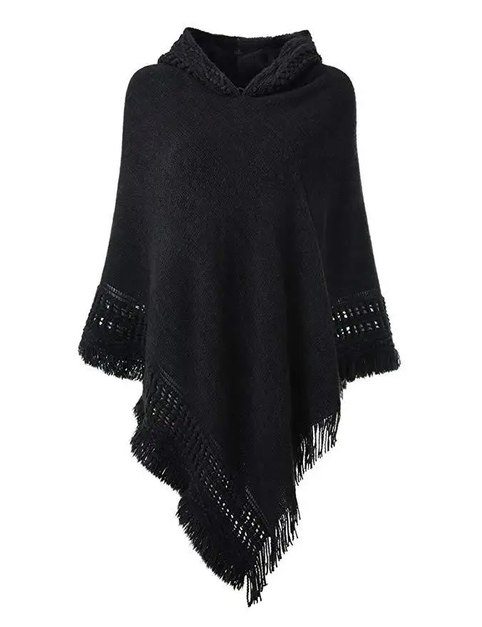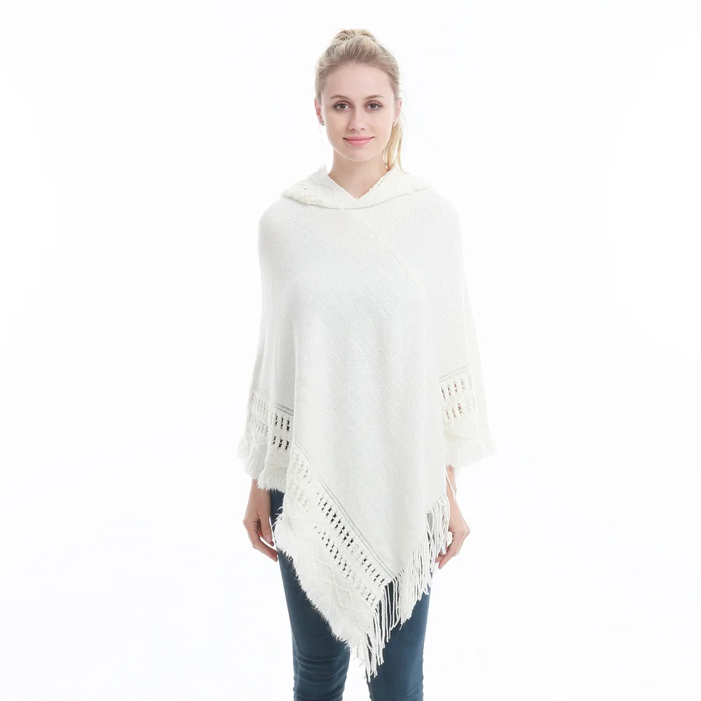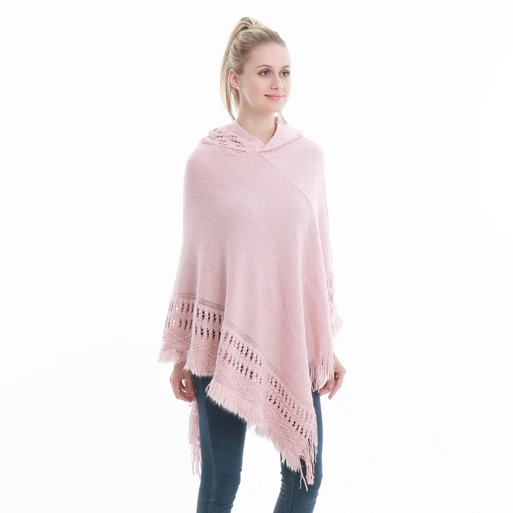 Зимний вязаный пуловер с капюшоном, женское пончо, однотонная Вязаная толстовка с капюшоном, свитер, шарф свободного кроя, шали с кисточкой для мужчин