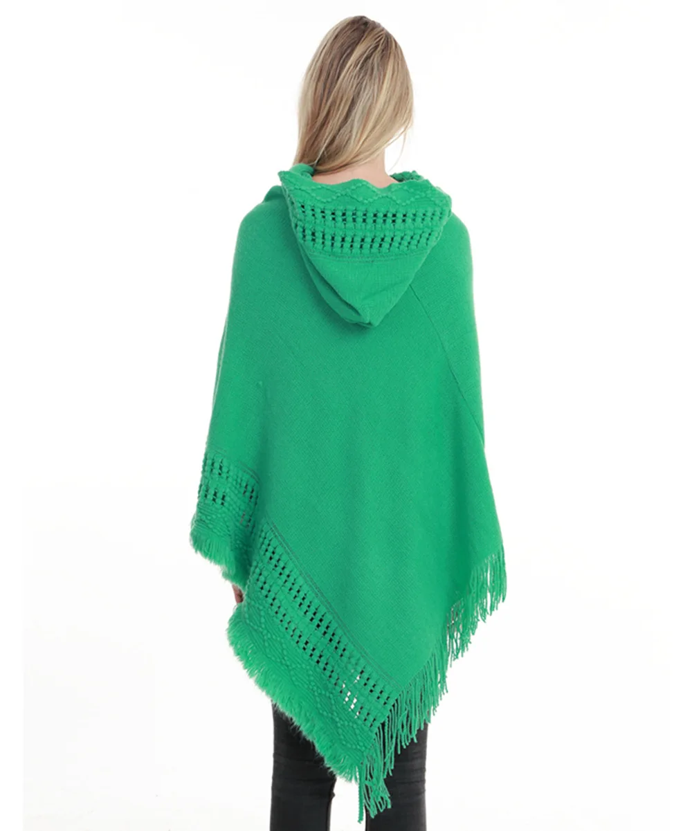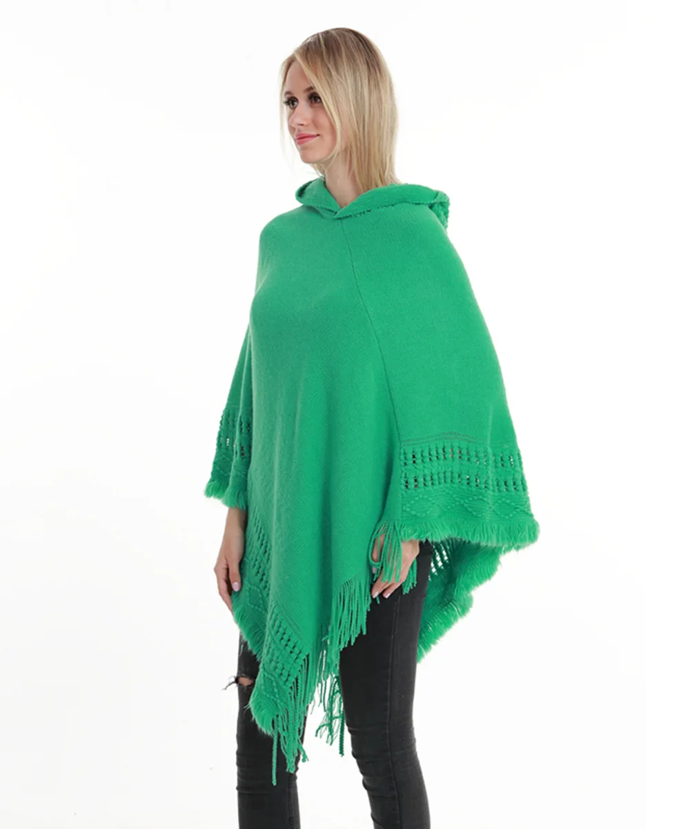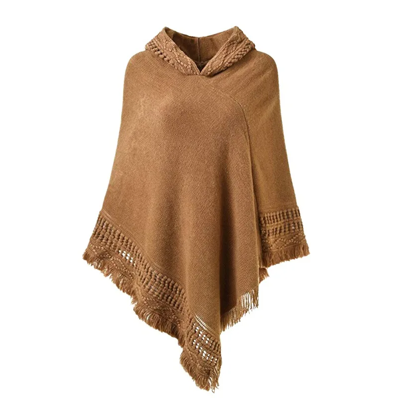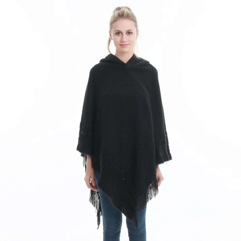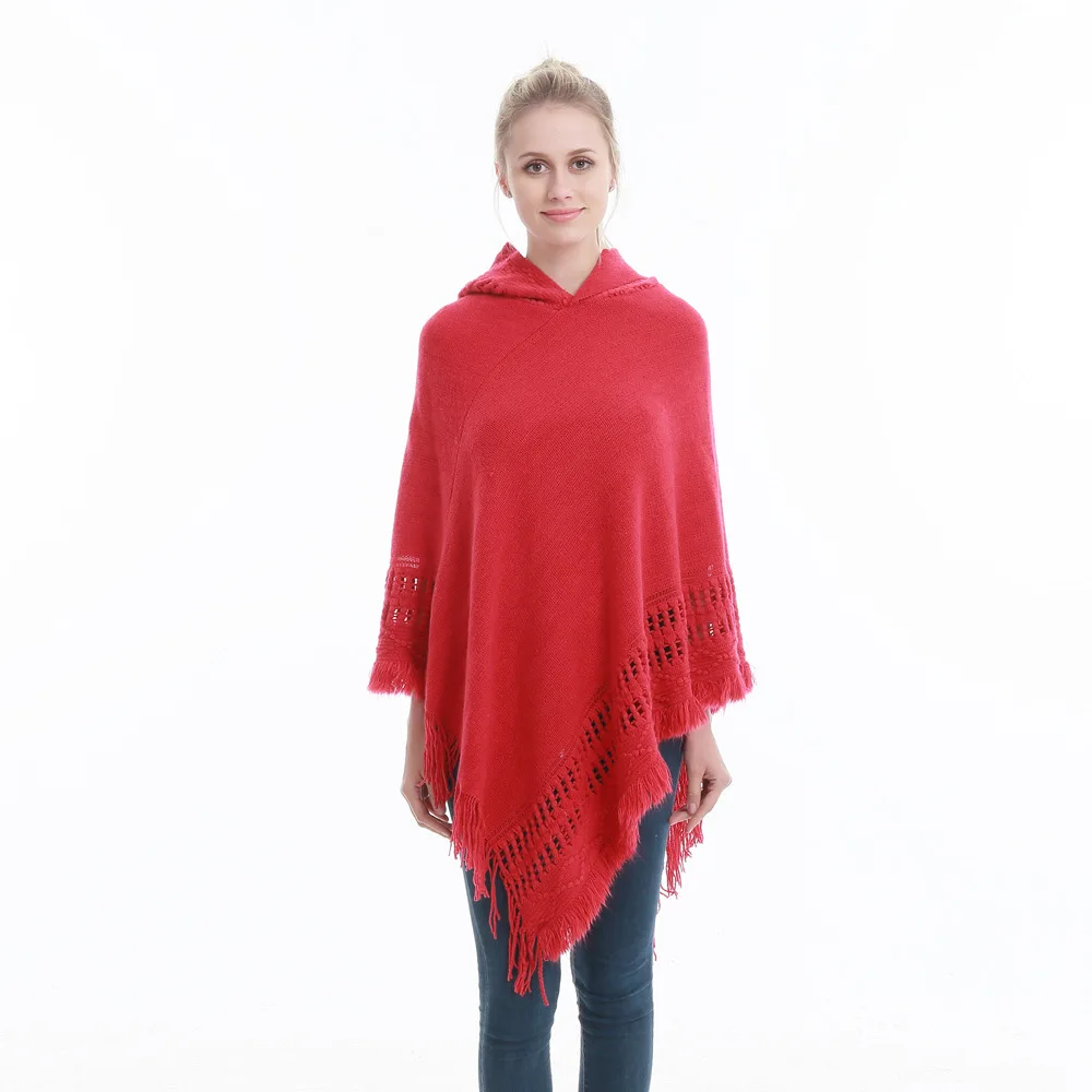 Зимний вязаный пуловер с капюшоном, женское пончо, однотонная Вязаная толстовка с капюшоном, свитер, шарф свободного кроя, шали с кисточкой для мужчин