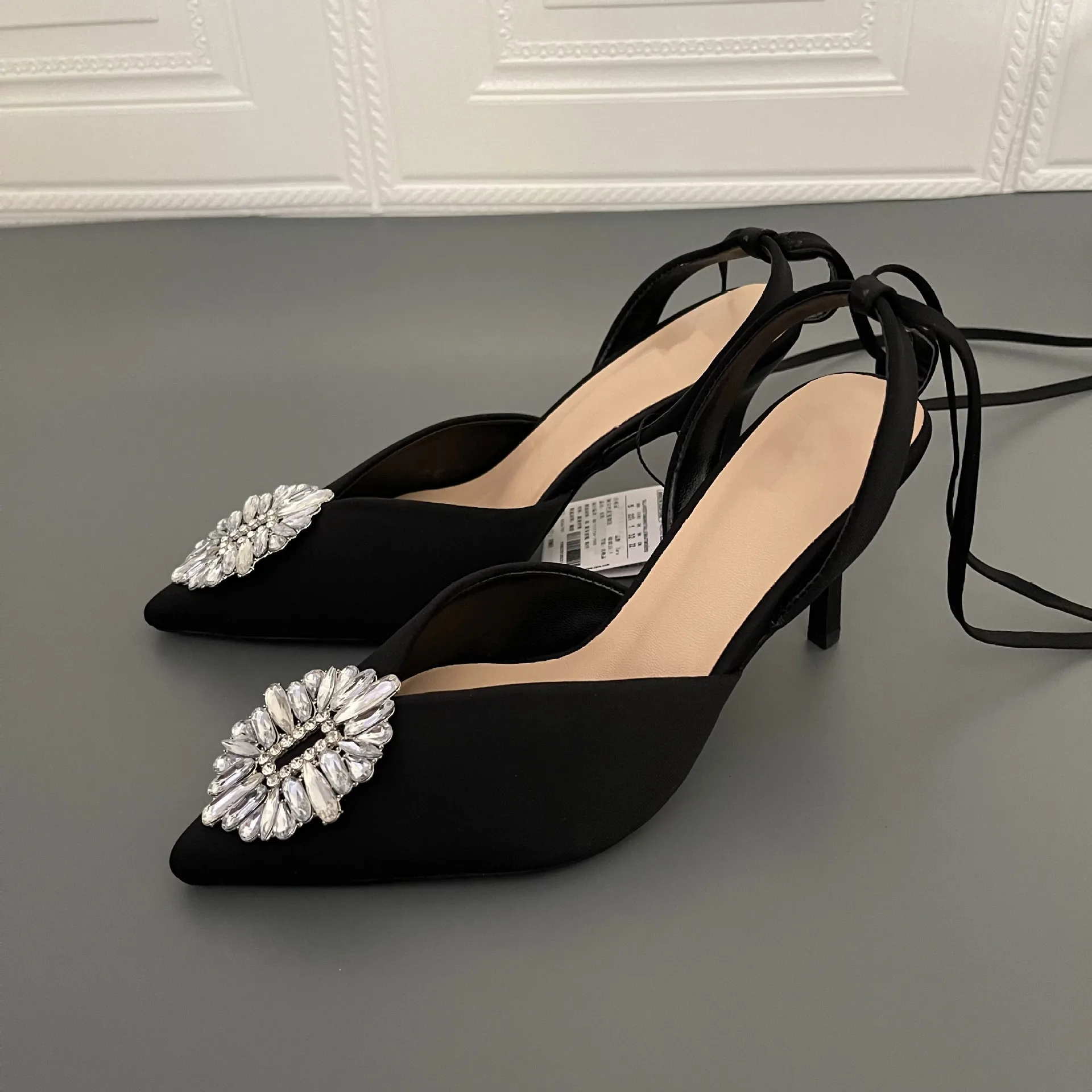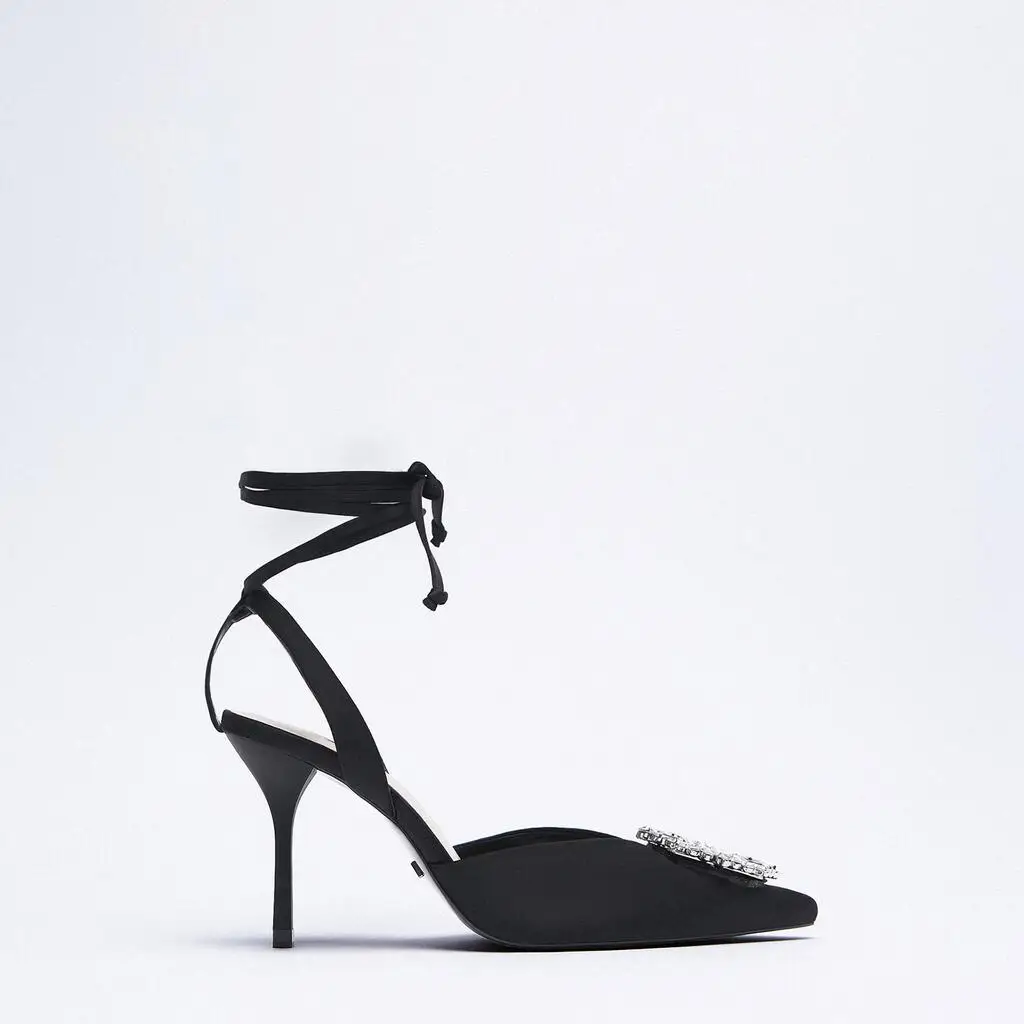 Женские туфли на высоком каблуке, с острым носком, на ремешках