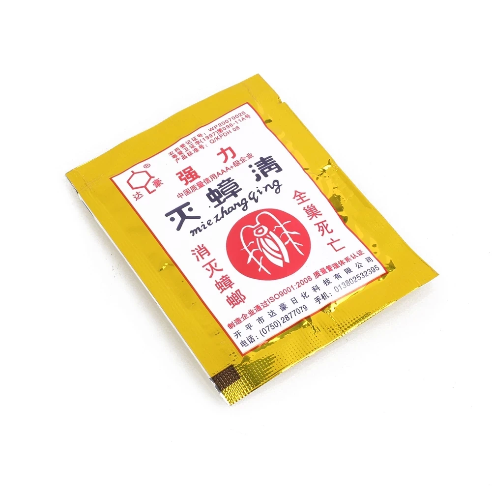 Примечание: номер на обратной стороне посылка-это дата, которая действительна в течение следующих двух лет.2% и 0.05% являются разными компонентами. 2% упаковок являются старыми, но теперь они былиЗаменены на новые 0.05%. Лучше убить тараканов.В пределах 20 квадратных метров, выберите три места, чтобы разместить лекарство от тараканов (одна посылка на место) и заменить его каждые три дня. Требуется 15 упаковок.24-48 часов: Тараканы начинают гибнуть, и тела видны один за другим. Тараканы менее активны.Семь дней спустя: 60%-70% тараканов умерли, и большинство из них погибают в гнездах.Пятнадцать дней спустя: более 90% тараканов умерло.