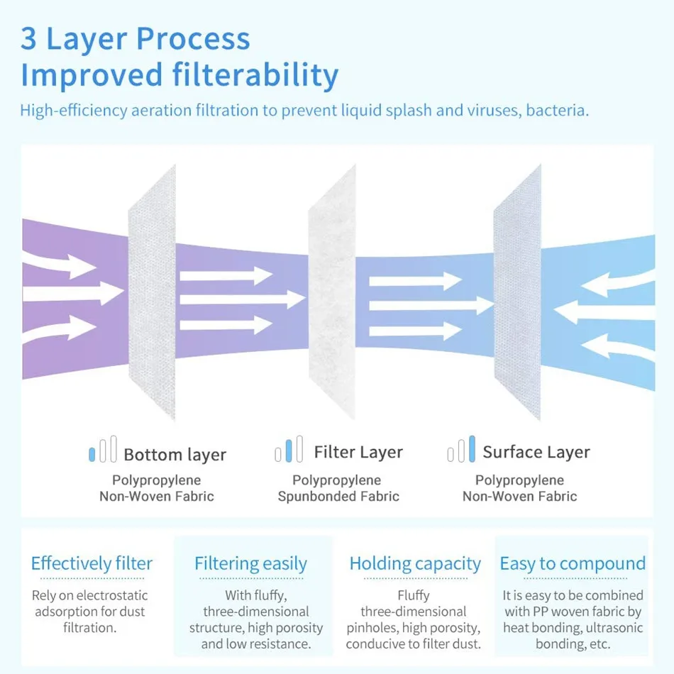 1. Новая ткань PP Нетканая ткань, мягкая и чистая, удобная и дышащая