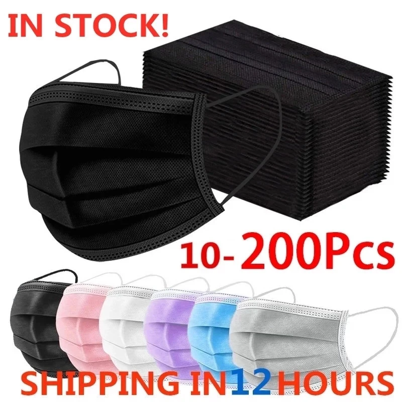 10-500 шт. одноразовые маски для лица, черная противопылевая маска ...
