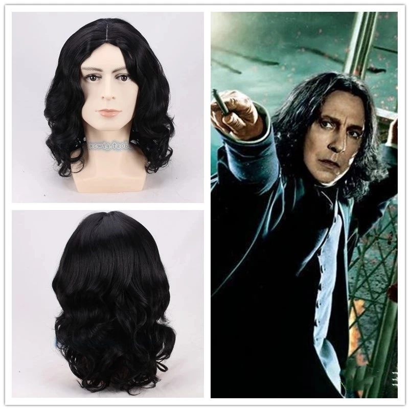 35 см длина плеча фильм Северус Снейп Черный Косплей парик профессора Снейпа кудрявый парик для Хэллоуина Косплей костюмы + Бесплатный парик