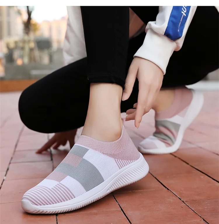 Женские кроссовки на плоской платформе, дышащие, вязаные, Повседнев...