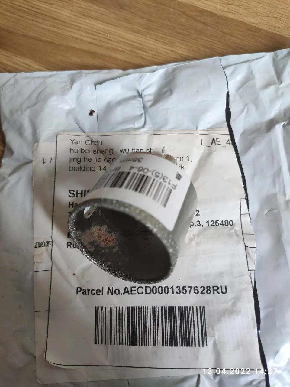 Доставкой доволен, всё дошло в целости и сохранности, довольно быстро. Отслеживалось чётко, на каждом этапе. 38 головка. Качество товара вызывает сомнения. Просто блестящее покрытие на ржавом металле (см.фото). Видать, давно валялось у продавца за ненадобностью... Никаких алмазных-быстрорежущих покрытий не наблюдается, только неглубокие риски на поверхности и лёгонькое напыление под краску из какой-то мет. крошки. Даже не буду портить поверхность, предполагаемую для сверления. Куплю, проверив качество, пусть дороже, на внутреннем рынке. В этот раз не повезло.
