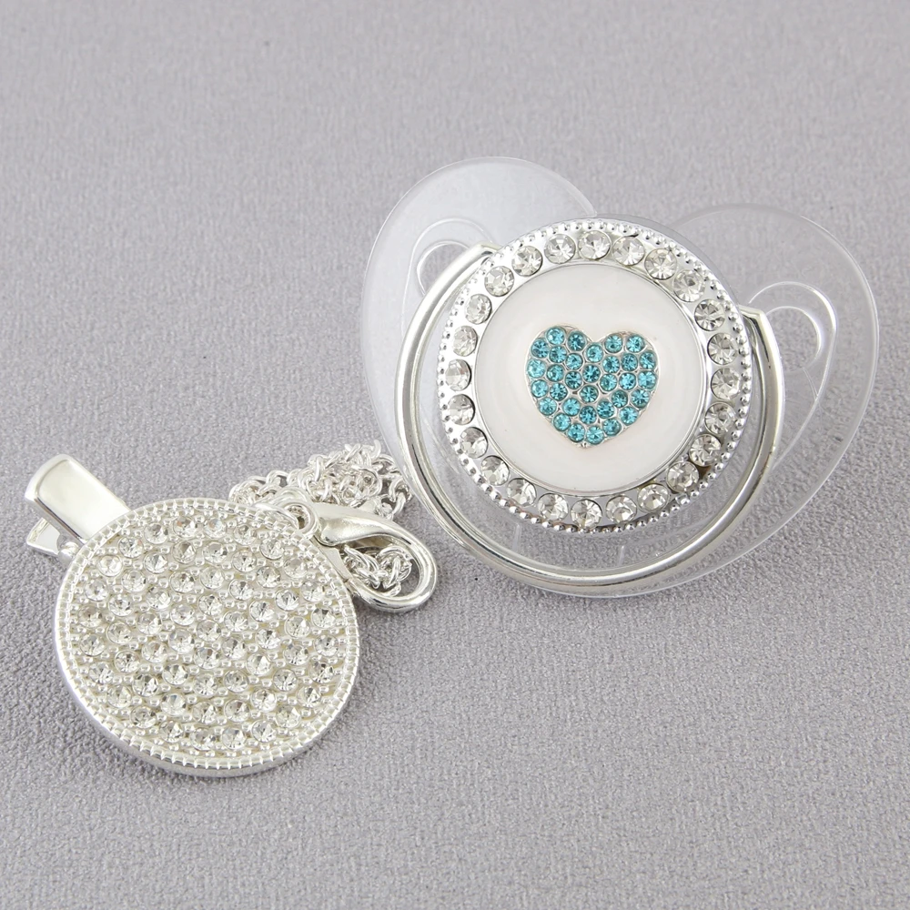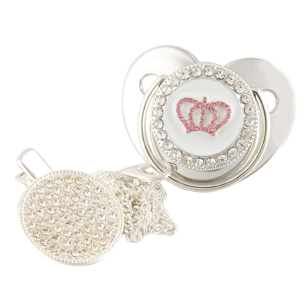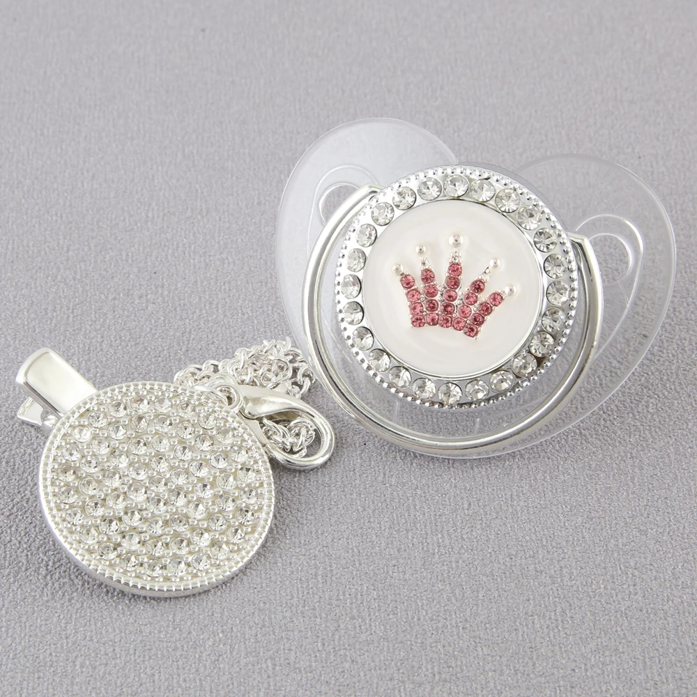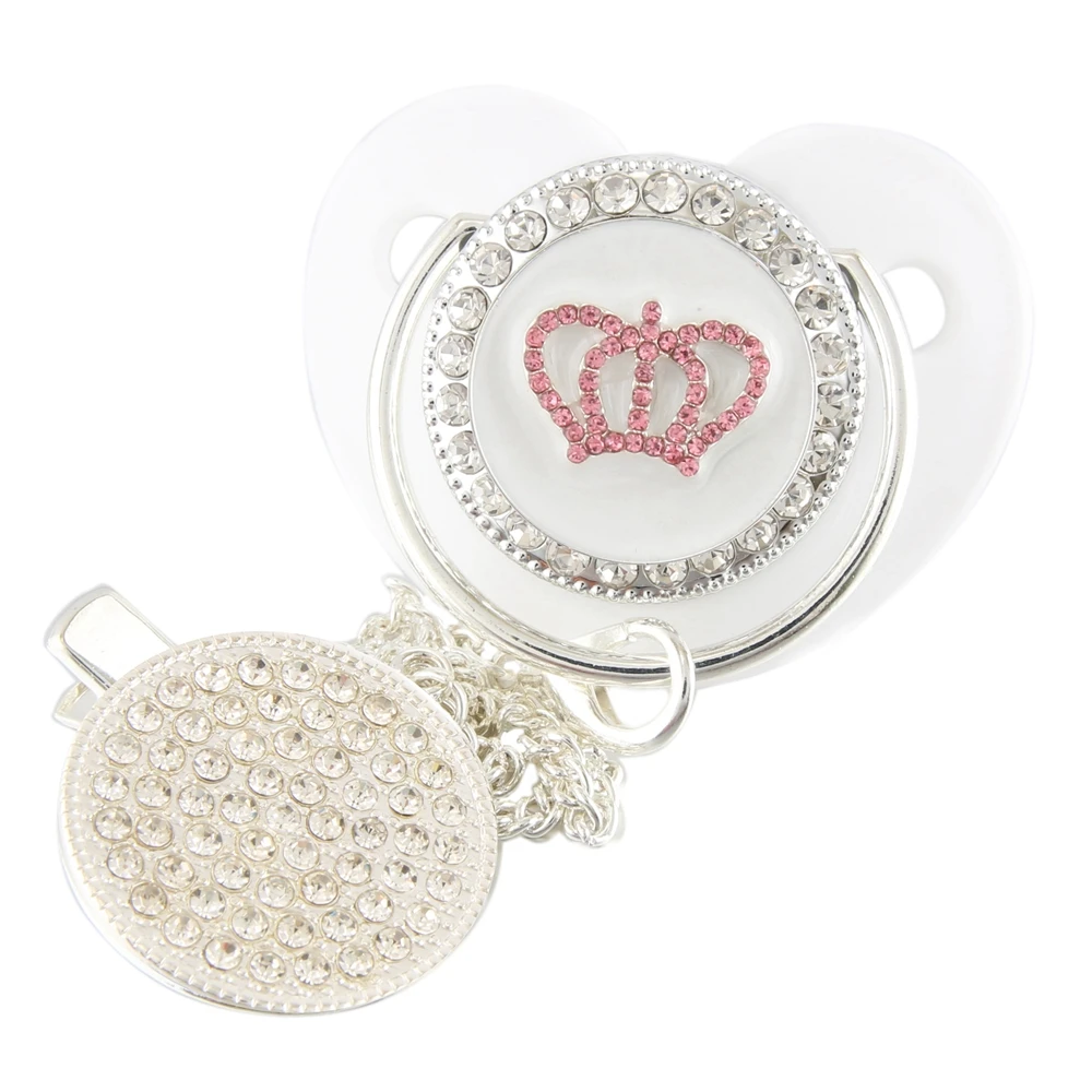 Серебристая прозрачная детская пустышка с зажимом, корона, сердце, для новорожденных, BPA бесплатно, роскошная блестящая пустышка, пустышка, Chupeta, 0-12 месяцев