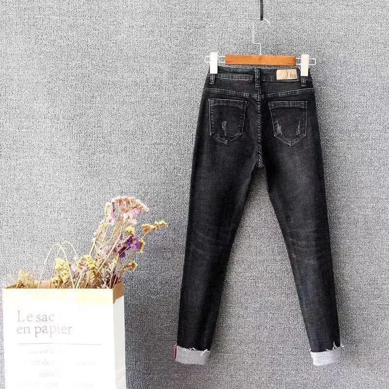 Черные джинсы, новинка, женские штаны с высокой талией, эластичные узкие брюки-карандаш, облегающие модные брюки в Корейском стиле, новинка 2022
