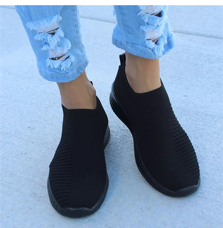 Кроссовки-носки женские на платформе, Вулканизированная подошва, дышащие, без шнуровки, массивные кеды