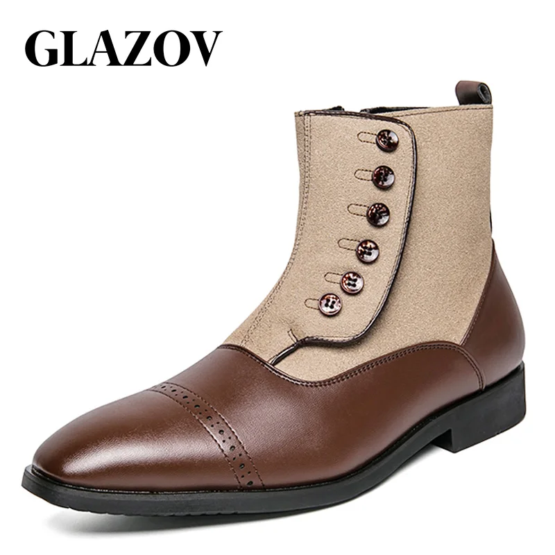 Новинка 2022, мужская обувь от бренда GLAZOV, модная трендовая натуральная черная обувь ручной работы из искусственной кожи, строченные белые Замшевые классические мужские ботильоны на пуговицах
