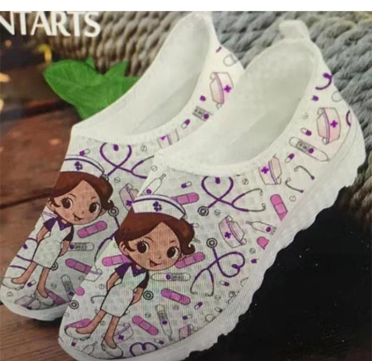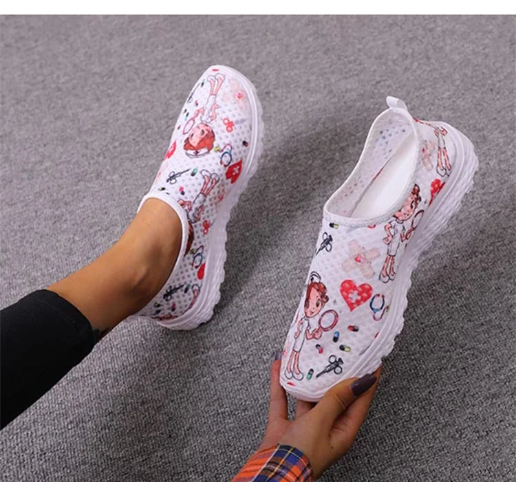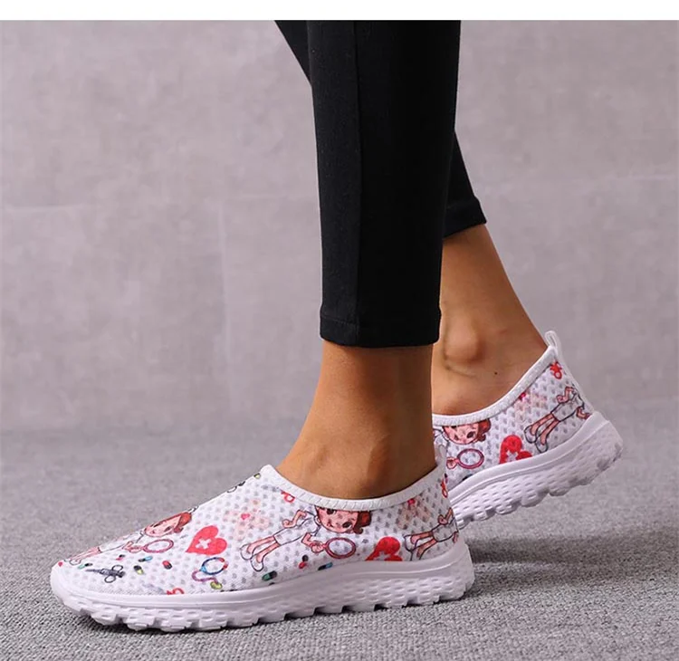 Женские кроссовки без шнурков, летние, дышащие, с мультяшным принтом