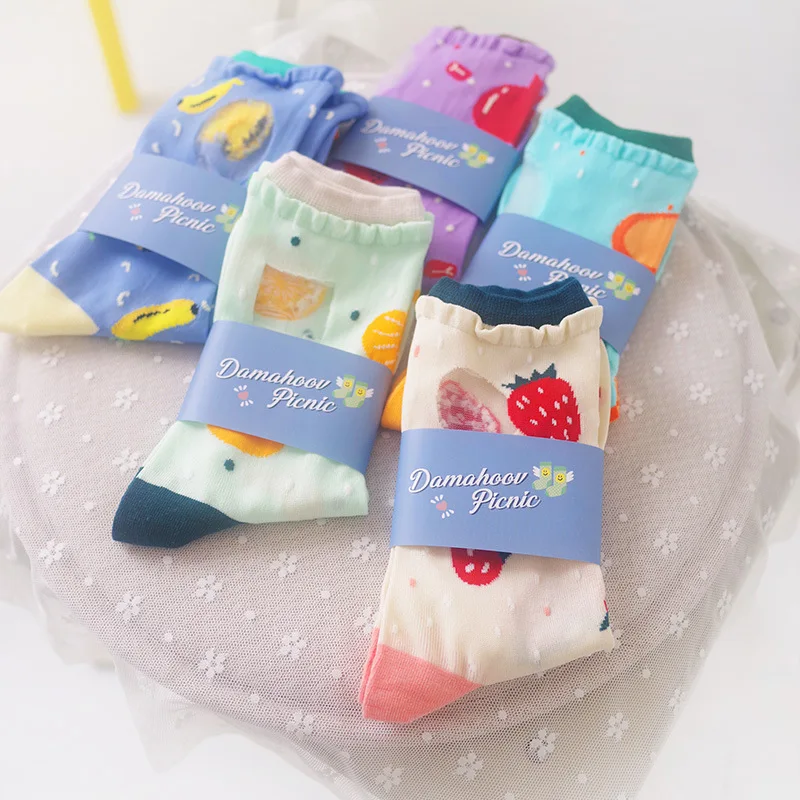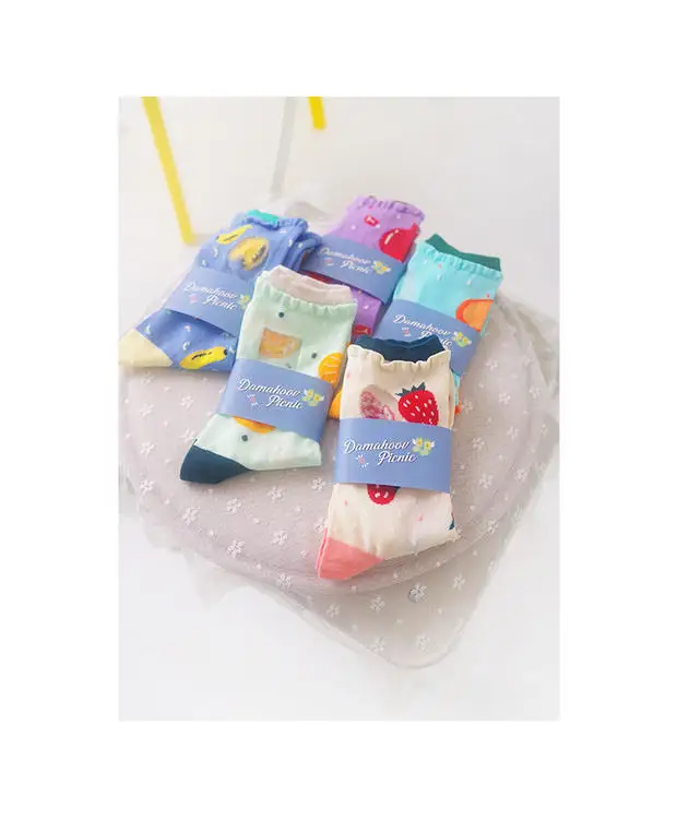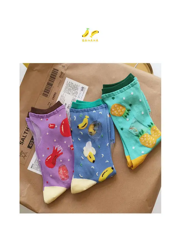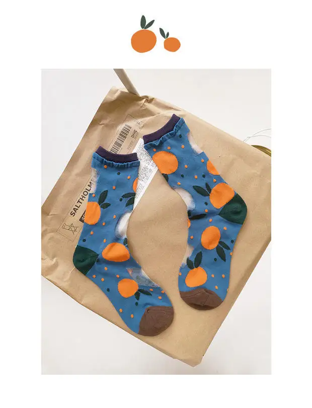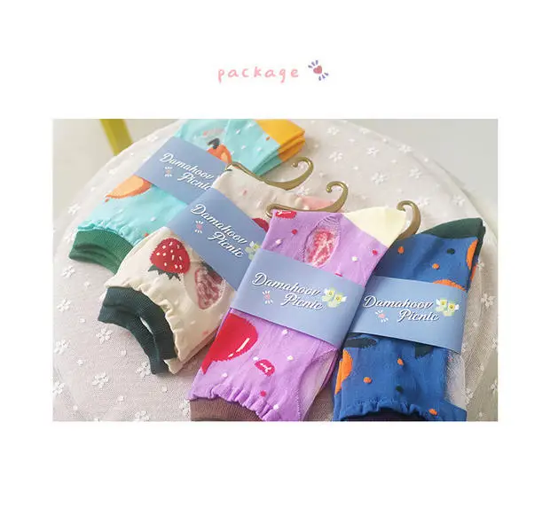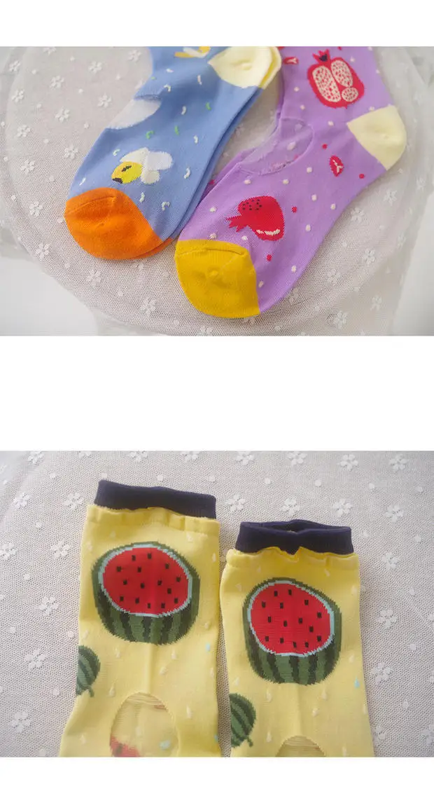 Летние новые стеклянные шелковые чулки с фруктами тонкие дышащие японские милые небольшие свежие носки женские носки средней длины