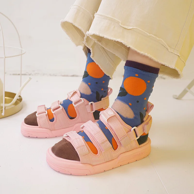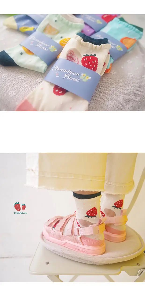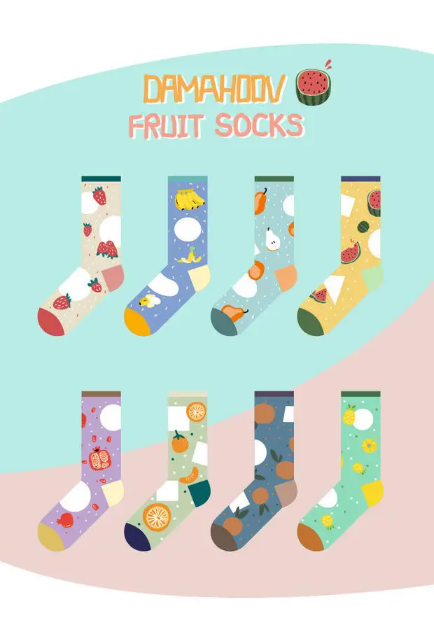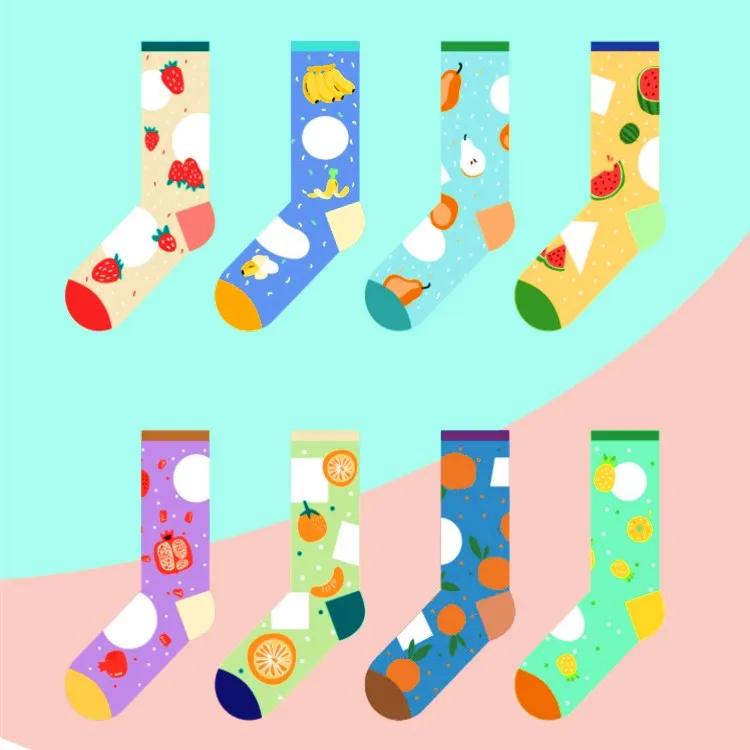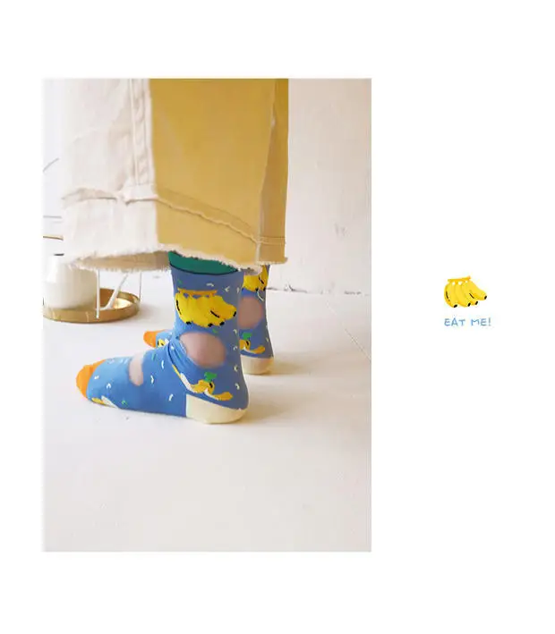 Летние новые стеклянные шелковые чулки с фруктами тонкие дышащие японские милые небольшие свежие носки женские носки средней длины