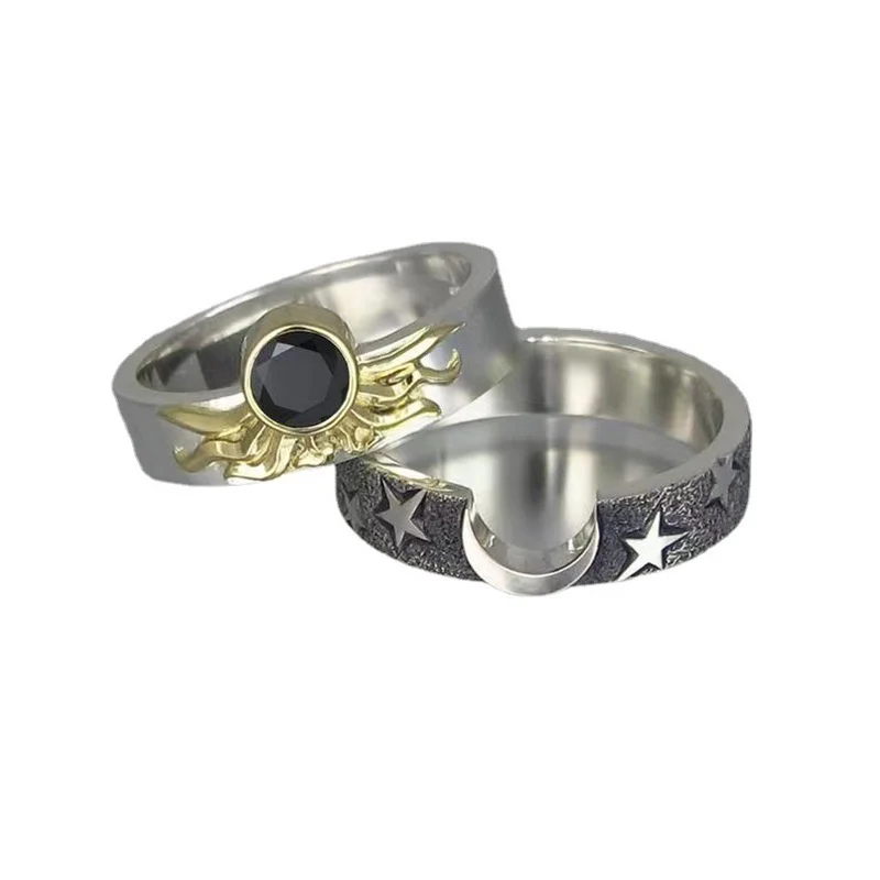 Парное кольцо с солнцем и луной, регулируемое кольцо, Открытое коль...