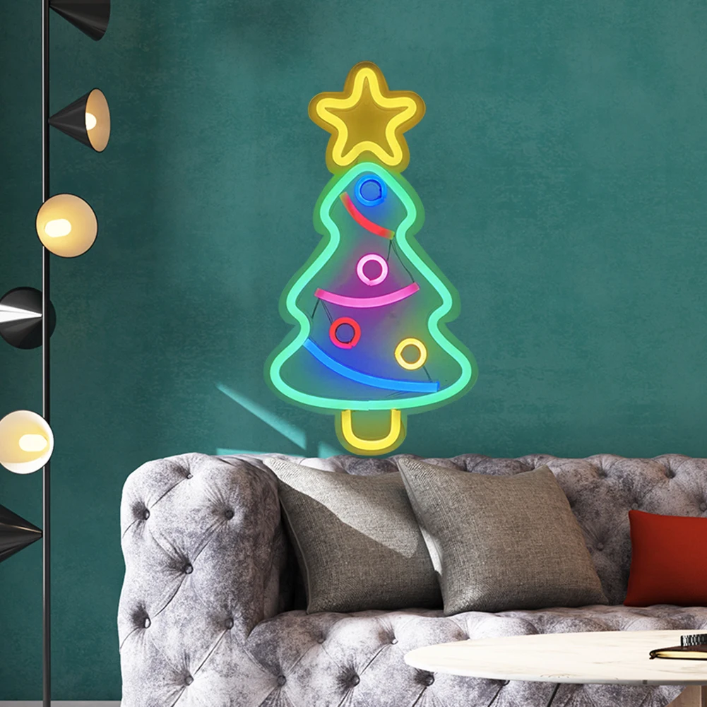 Неоновый светодиодный светильник в форме рождественской елки, комнатное украшение для дома, вечеринки, свадьбы, спальни, гостиной, подарок на день рождения, питание от USB
