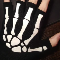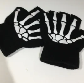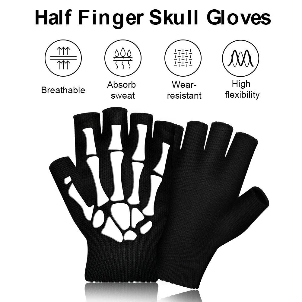 Теплые вязаные перчатки для взрослых, однотонные акриловые перчатки на полпальца, перчатки с защитой головы скелета человека, велосипедные Нескользящие перчатки с принтом
