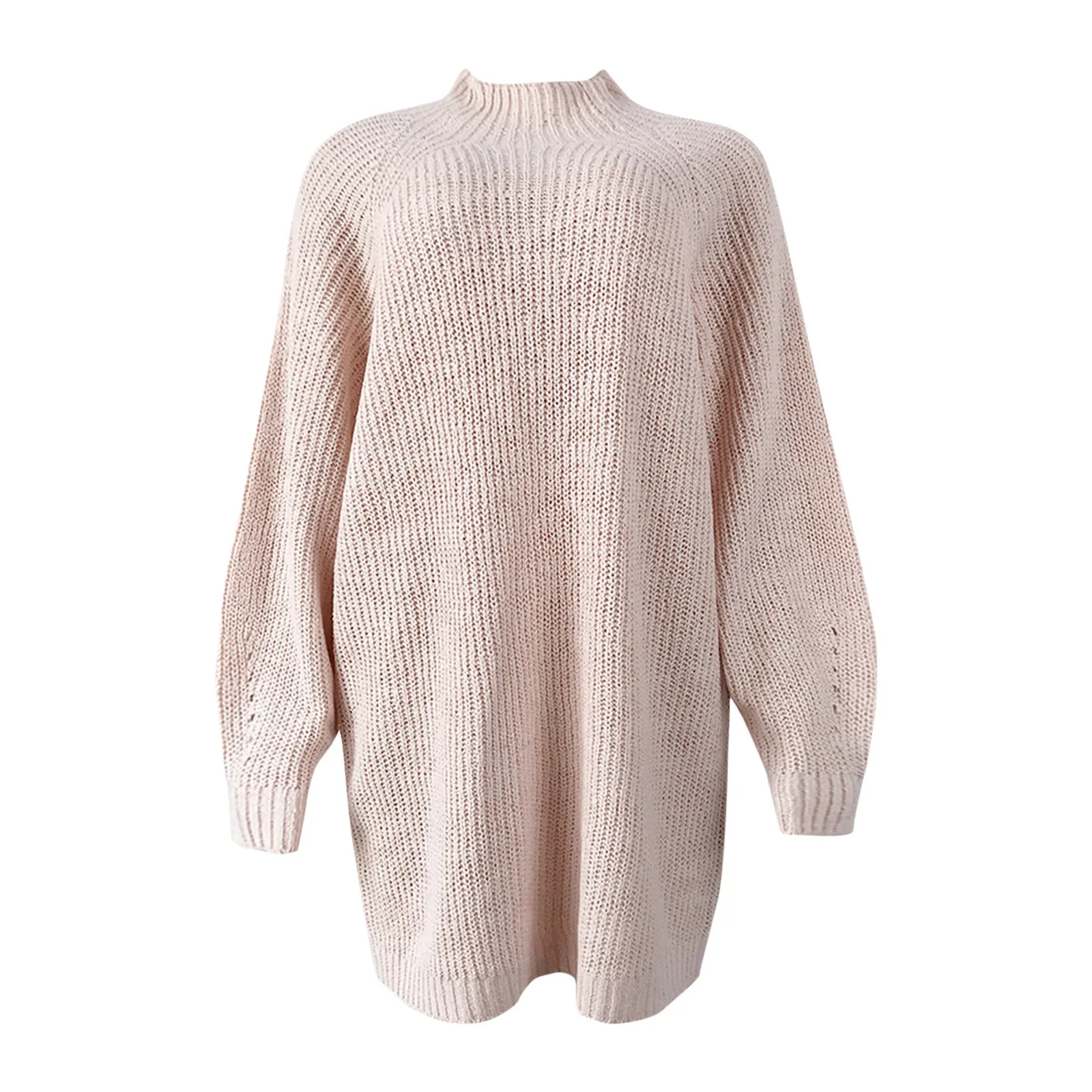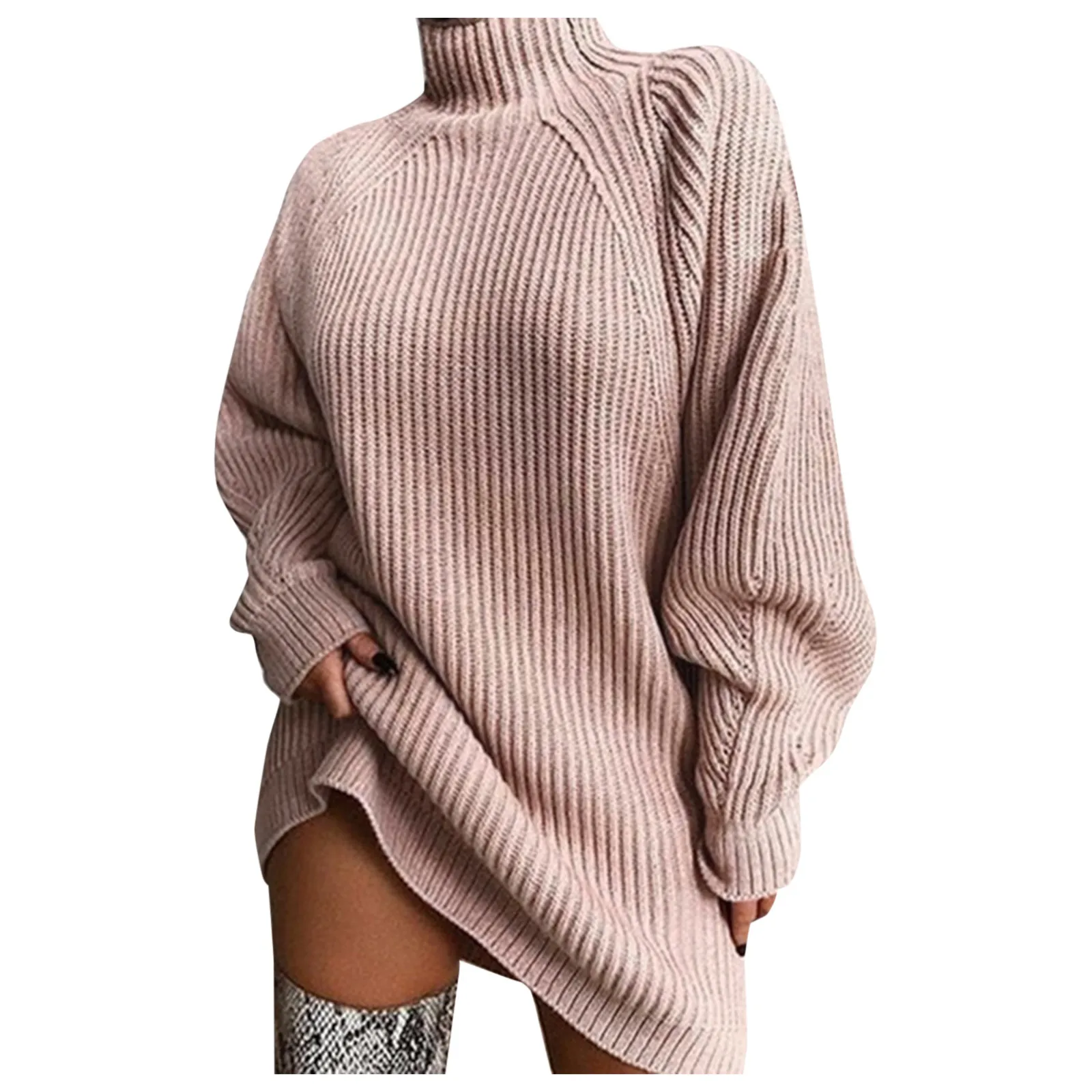 Женский свитер с высоким воротником и длинным рукавом, зимнее свободное платье-свитер с высокой талией, теплый пуловер, Женская туника, джемпер, зимняя одежда