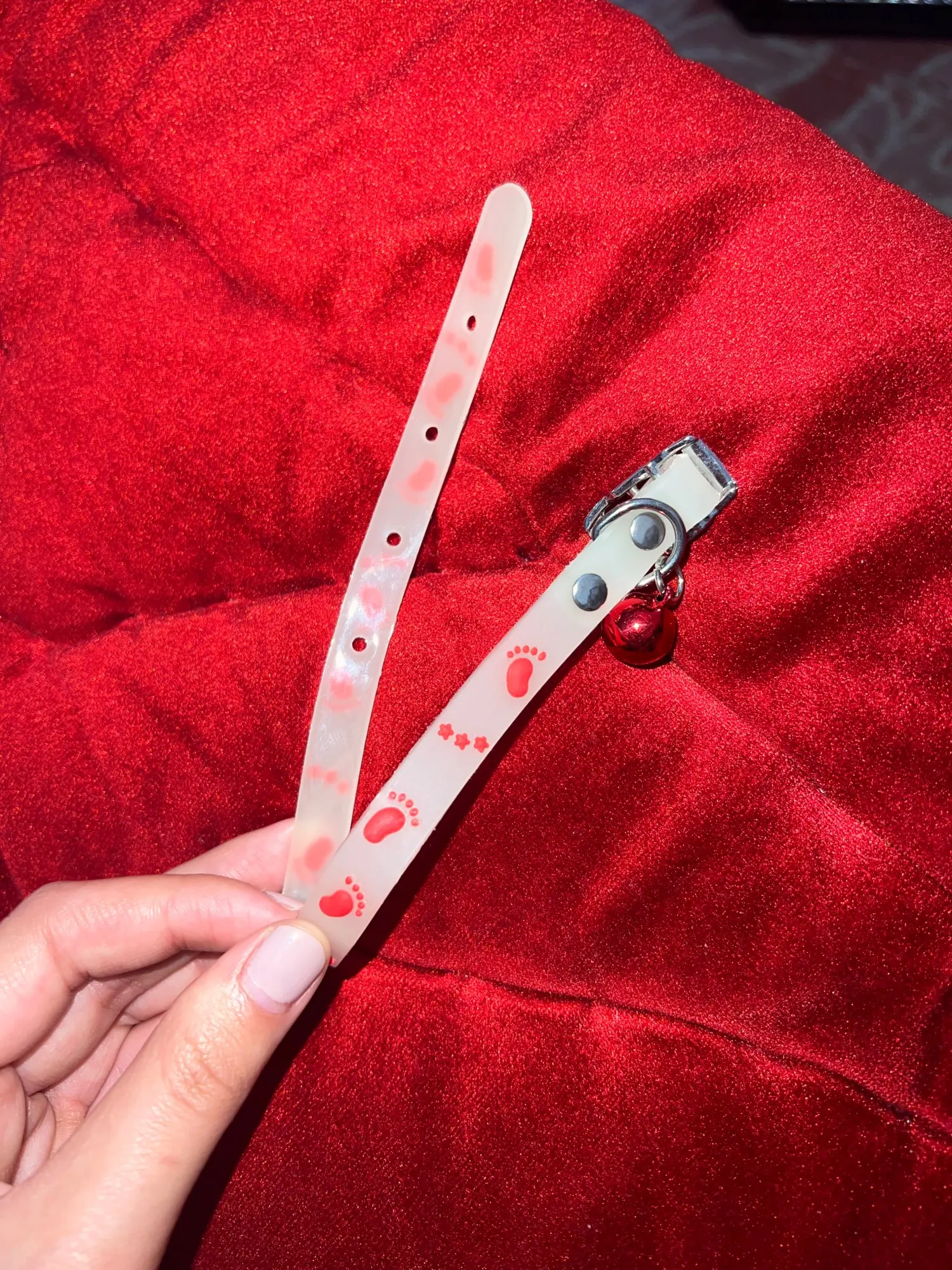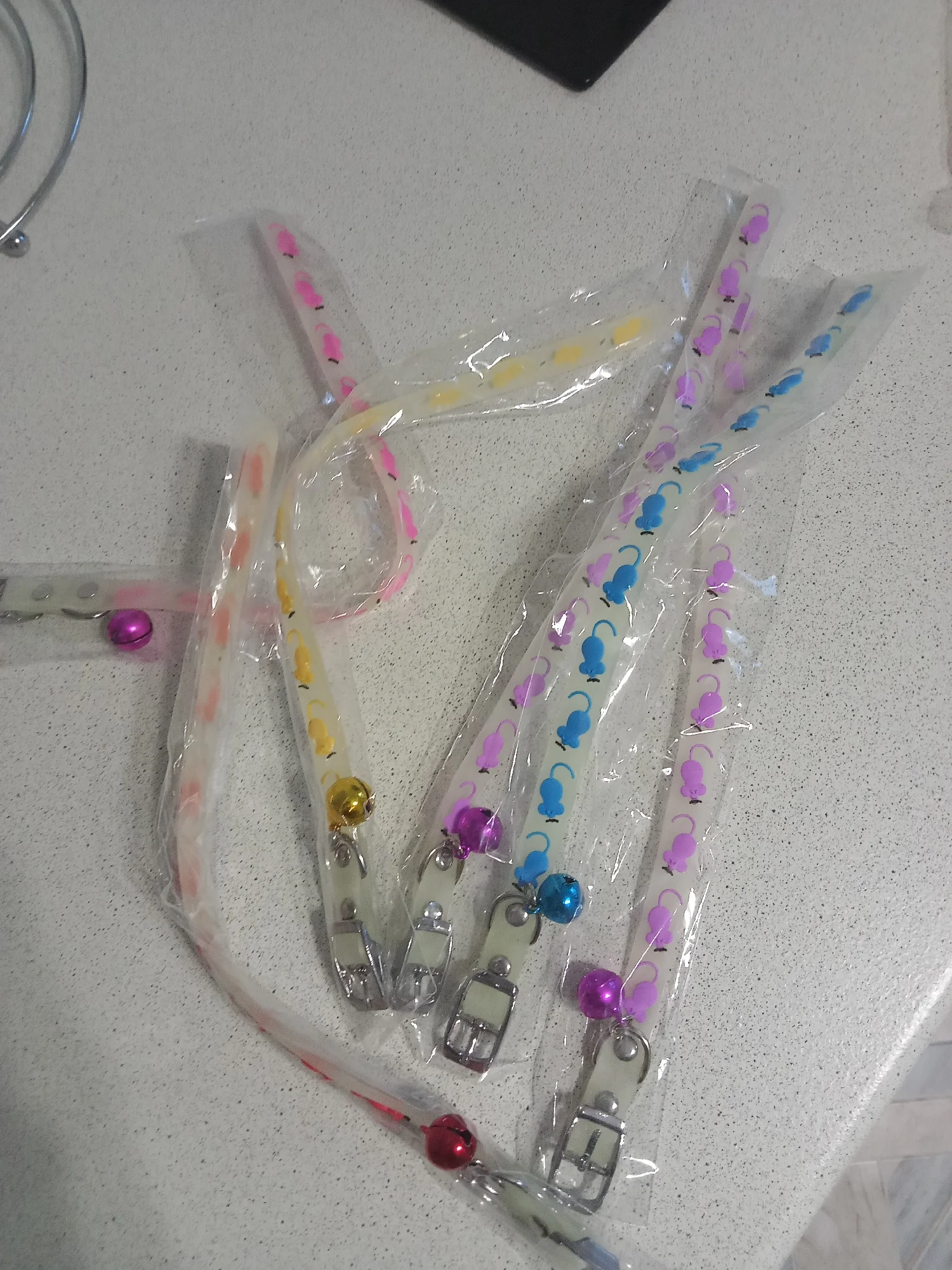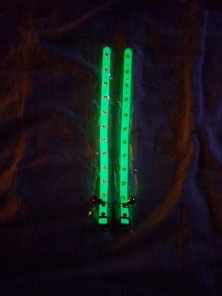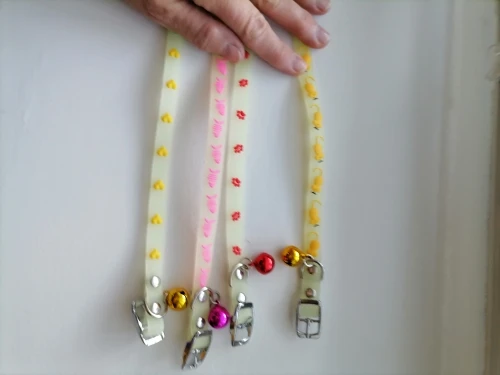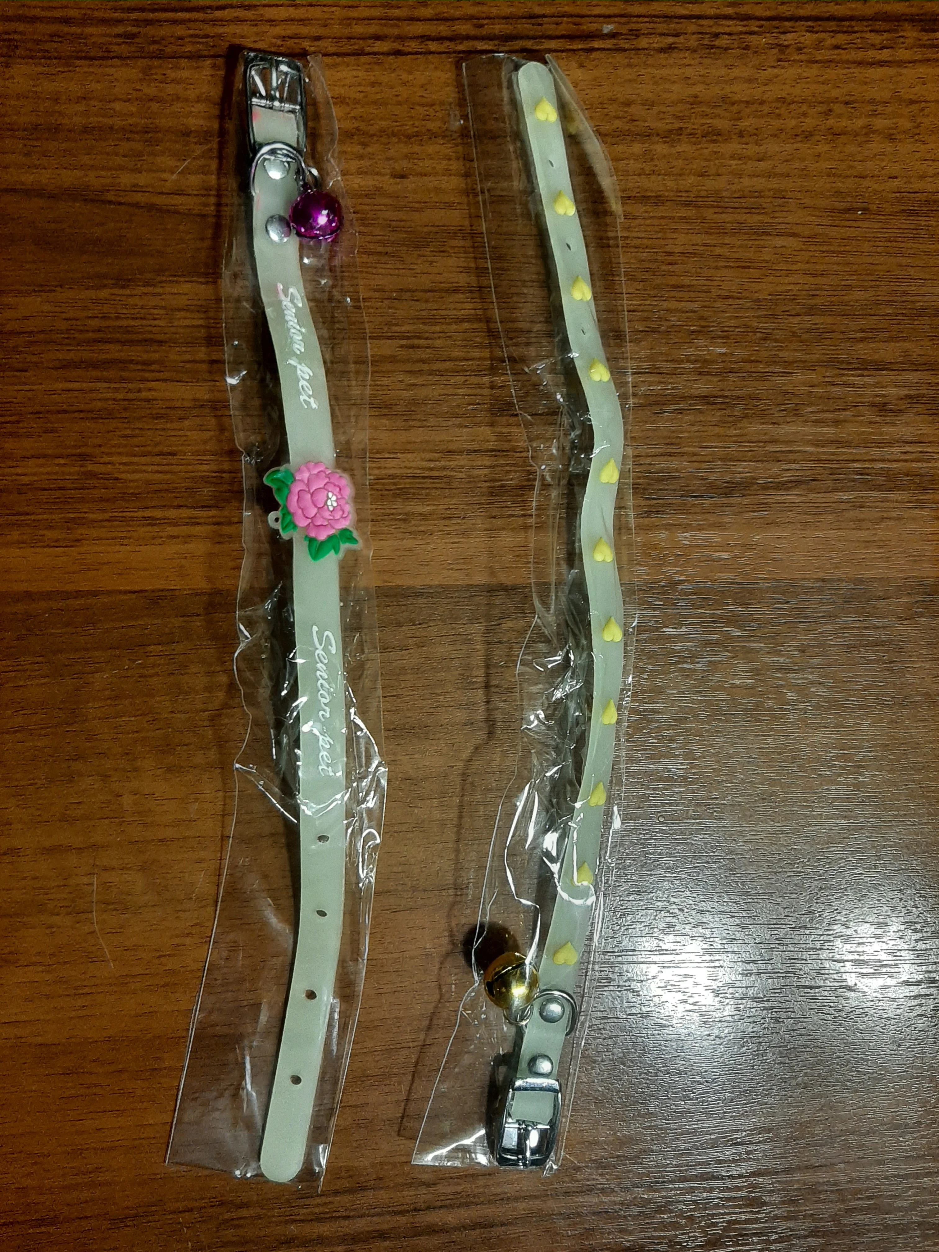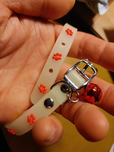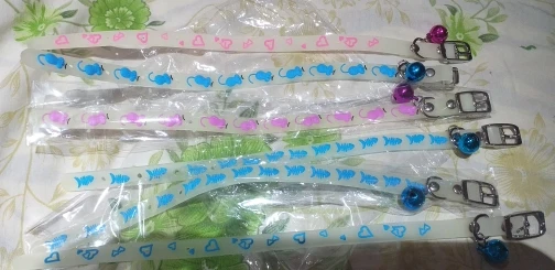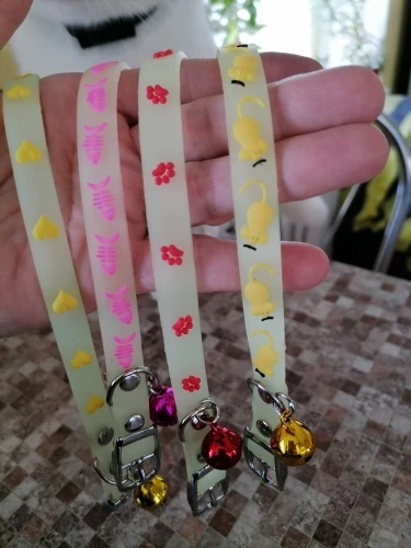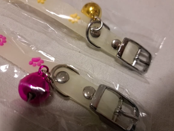 На удивление отличные ошейники. Идеальный размер, хорошая застёжка, колокольчик большой и звонкий, ничего лишнего нигде не болтается и да, светится :)