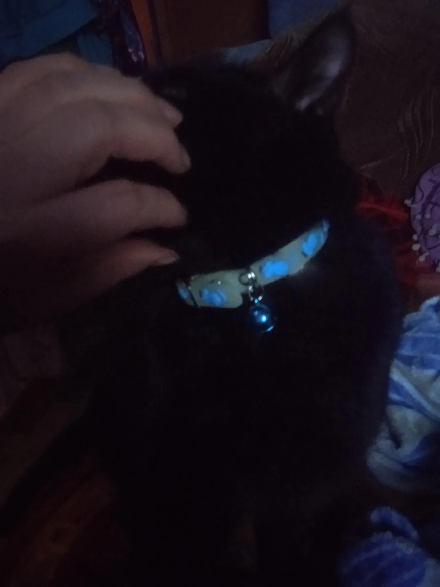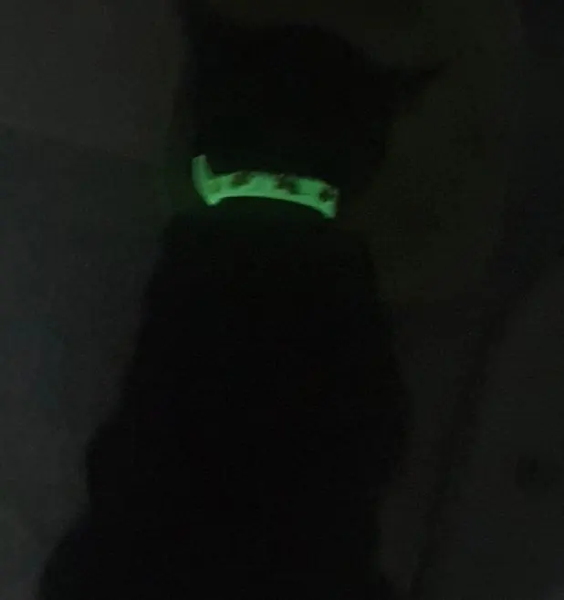 светится в темноте, кошку не видно , только ошейник!