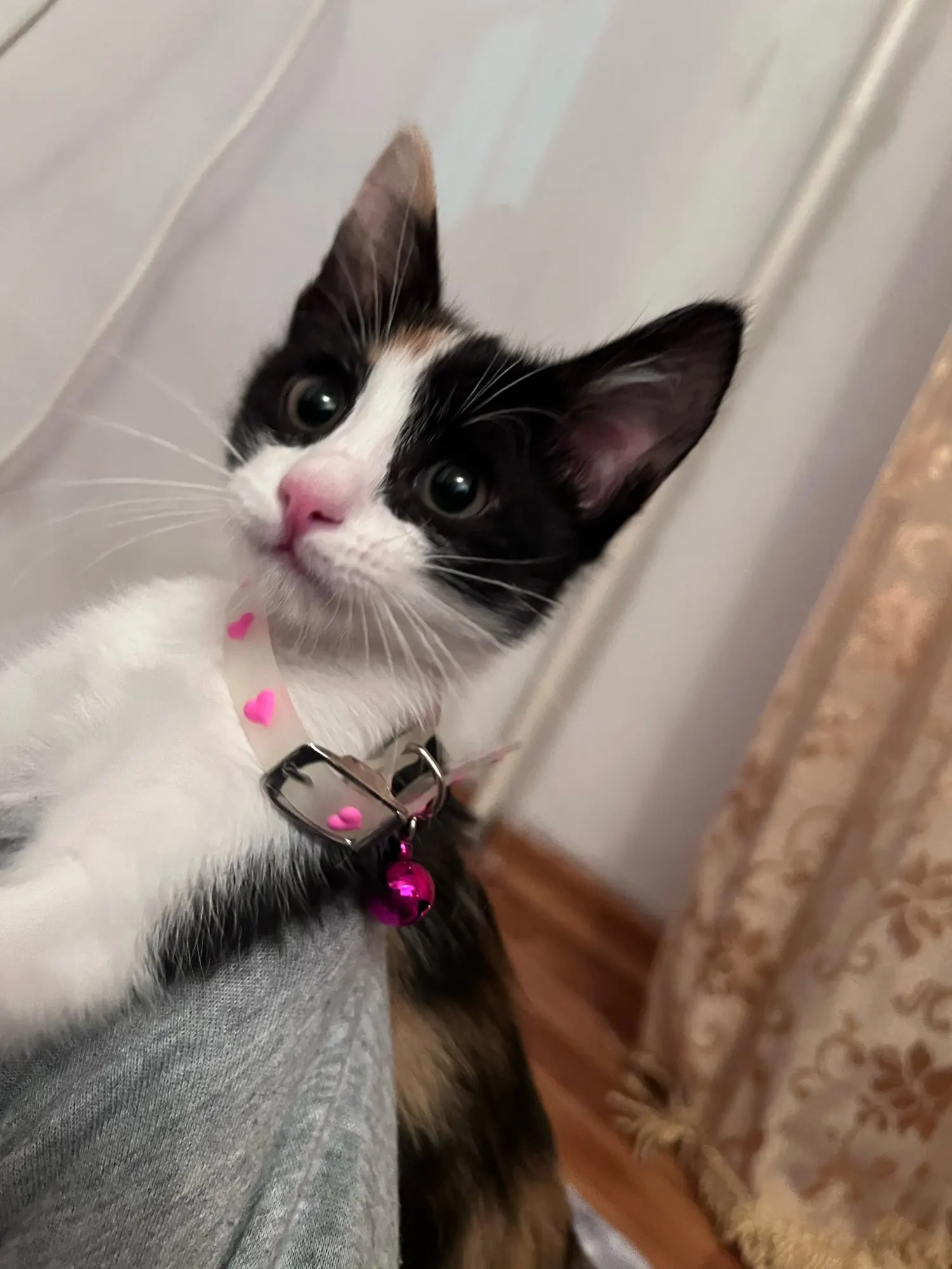 нашийник гарний, м'якенький, в темноті гарно видно, дзвіночок голосний
