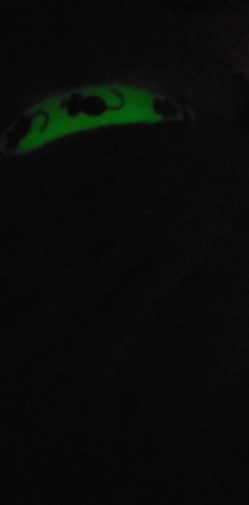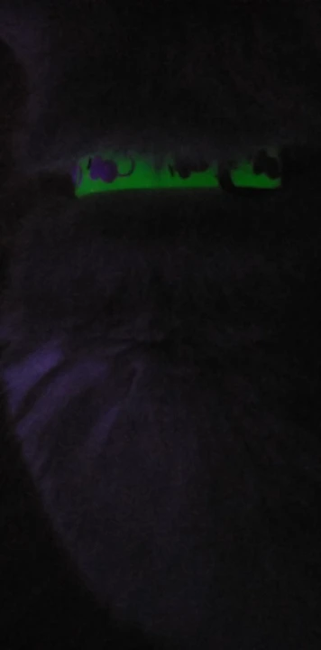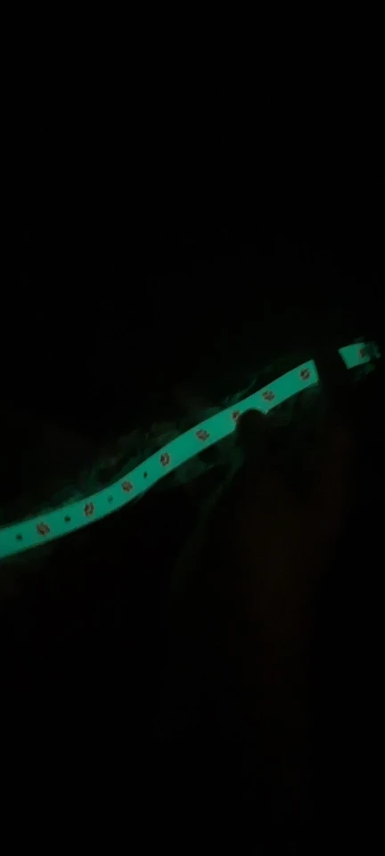 Классный ошейник. Днём, когда получил ошейник, он не светился, Ну думаю обманули. А закрылся в ванной- а он так здорово светится!!! Посмотрим, на сколько его свечение хватит.