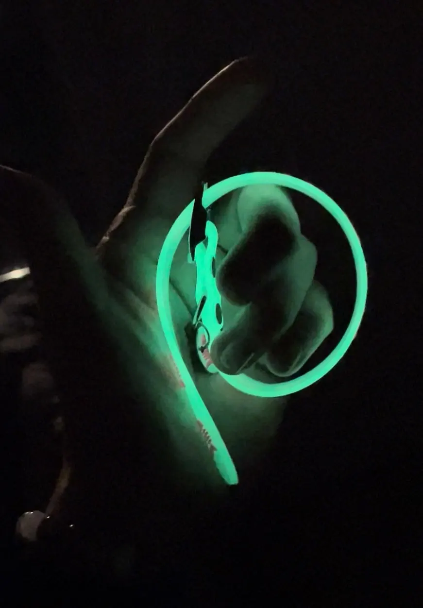 Мне нравится, он легкий, и если он светится в темноте, он не очень интенсивный, но он светится. Так что легче найти мою кошку ночью