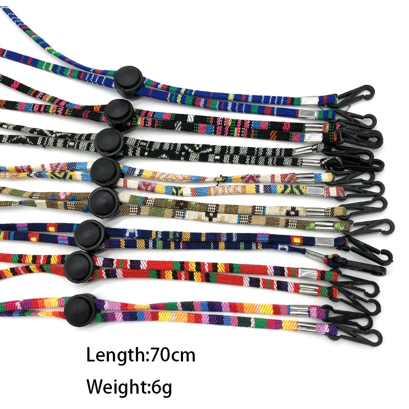 Название продукта: веревка для очков, цепочка для маски, ветрозащитный тросДлина: 70 смВес: 6 г-9 гМатериал: нейлон, хлопокПрименение: маски, очки, шляпыУпаковка: индивидуально упакованная Примечание: Из-за ручной работы, очень немногие нитки будут обработаны после резки, пожалуйста, поймите, большое спасибо