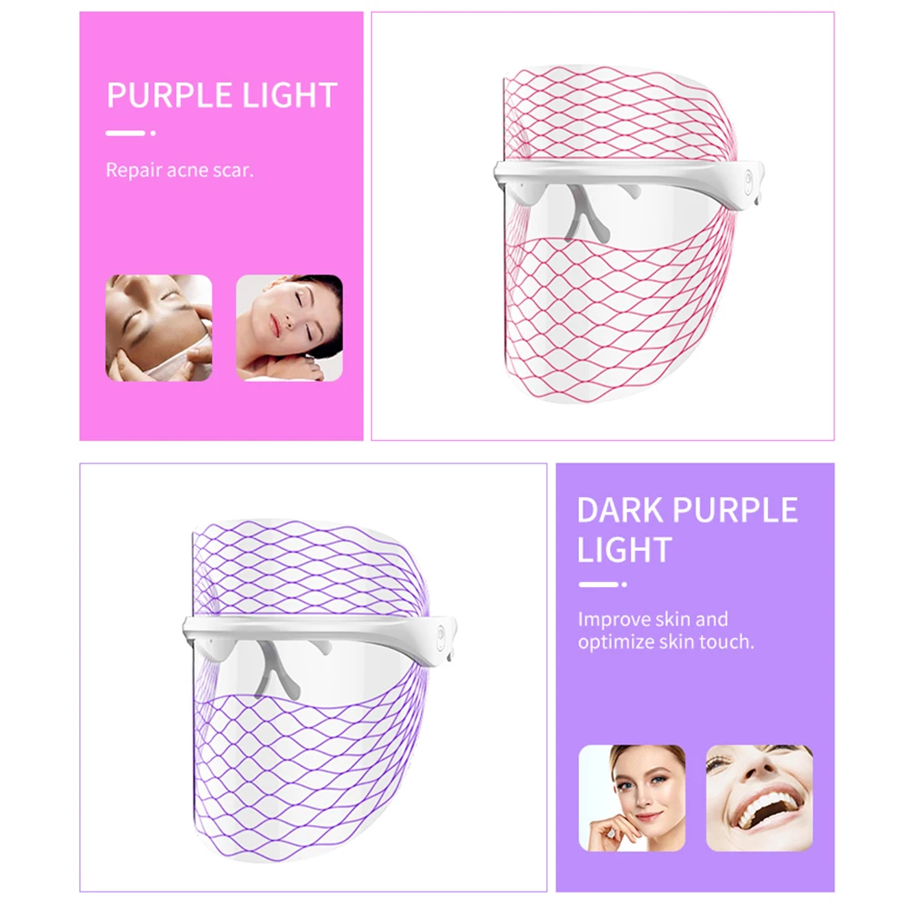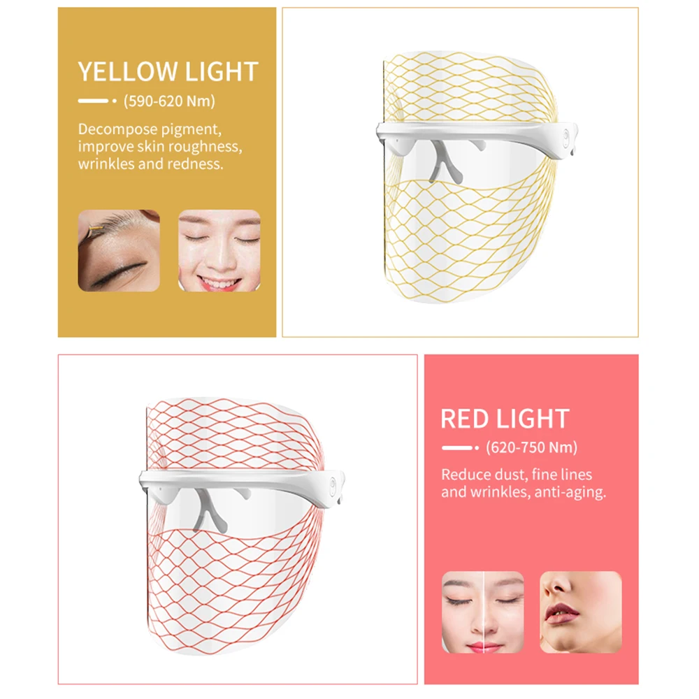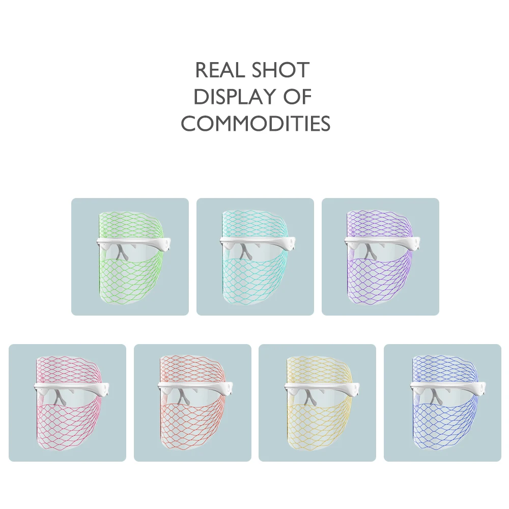 7 цветов характеристики продукта:1. Длина волны красный светильник колеблется от 620 до 750 нм, и он предотвращает кровообращение, ускоряет обмен веществ, генерирует cllagen, способствует уходу за морщинками и улучшению кожи.