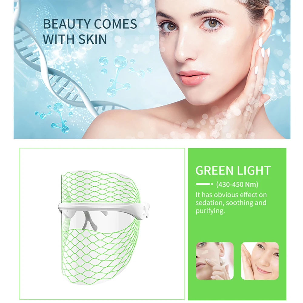 4. Зеленый светильник (520нм) для нейтрализации, баланса состояния кожи, снятия умственного стресса и эффективного дренажа лимфоида и отека.
