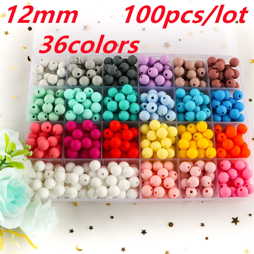 100 шт., Детские Силиконовые Бусины, 12 мм