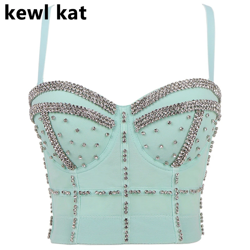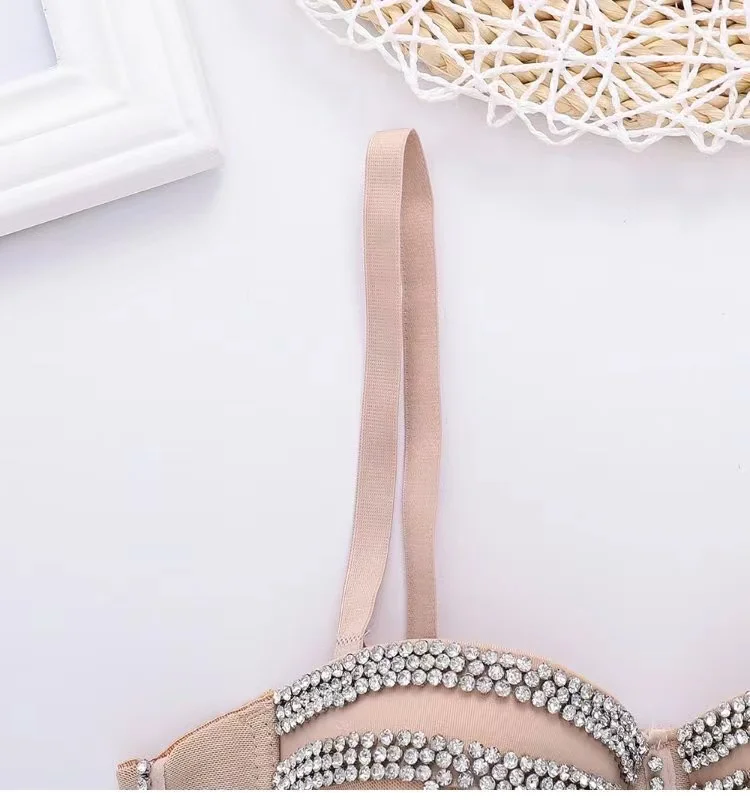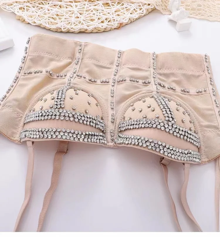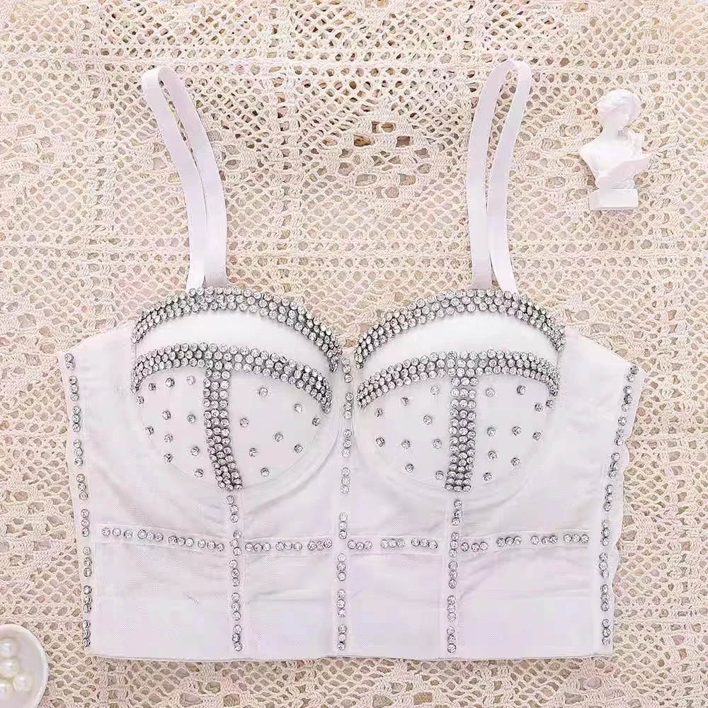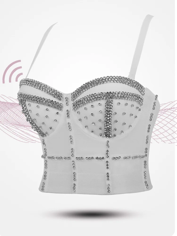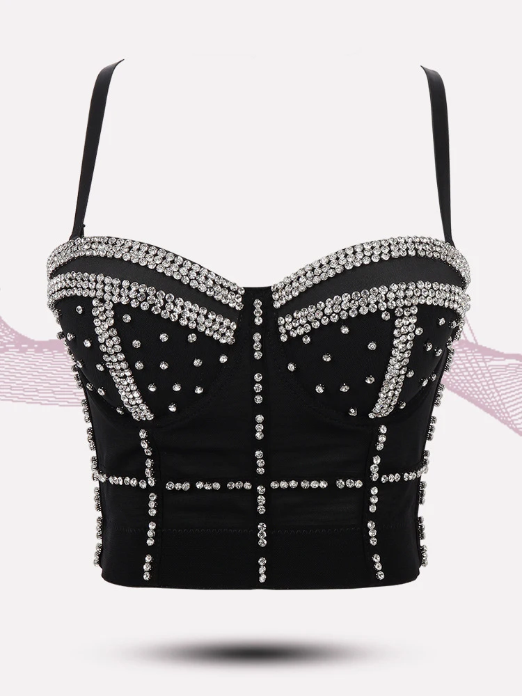 Сексуальный корсет Camisole Стразы Топ бюстье короткий топ женский без рукавов с открытой спиной бриллиантовый бюстгальтер блестящая майка Топ праздничная одежда